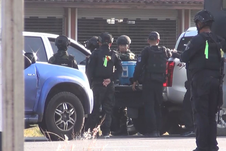 โดยเจ้าหน้าที่ไปถึงได้ทำการปิดถนนสายดังกล่าวทันที เนื่องจากเกรงว่าจะเกิดเหตุปะทะและประชาชนจะได้รับอันตราย เจ้าหน้าที่ไปถึงพบว่าเป็นบ้านเช่าห้องแถวชั้นเดียวติดกัน 8 ห้อง บ้านต้องสงสัยเป็นห้องแรกเจ้าหน้าที่ได้ปิดล้อมพร้อมได้เรียกบุคคลภายในบ้านออกมา กระทั่งมีคนตะโกนออกมาจากบ้าน ก่อนจะเดินออกมา เจ้าหน้าที่ได้สอบถามและทราบว่ามีอีก 2 คนที่ซ่อนตัวและไม่ยอมออกมา เจ้าหน้าที่จึงได้เชิญผู้นำท้องที่มาเจรจาให้ออกมาแสดงตัว แต่ก็ไม่มีเสียงตอบรับ