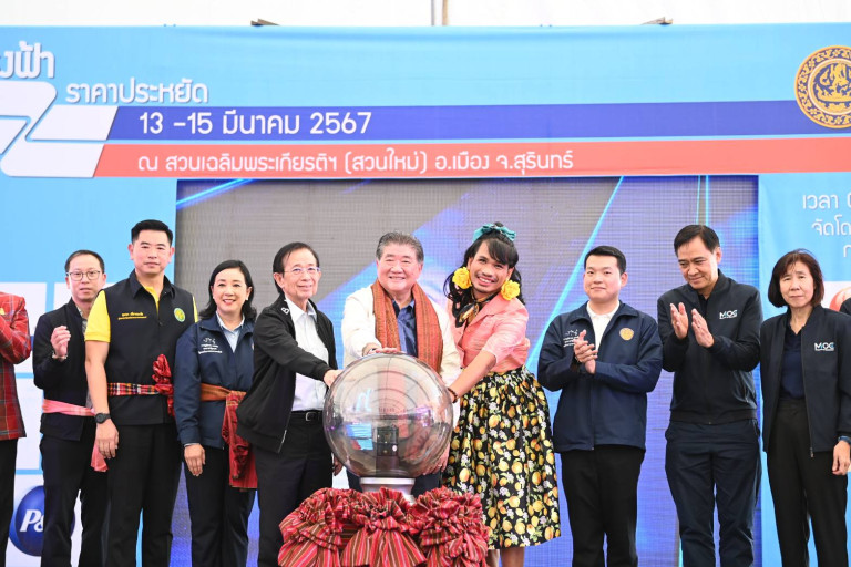 นายภูมิธรรม เวชยชัย รองนายกรัฐมนตรีและรัฐมนตรีว่าการกระทรวงพาณิชย์ เปิดเผยว่า กรมการค้าภายในกระทรวงพาณิชย์ ได้นำนโยบายของรัฐบาลในการช่วยลดภาระค่าครองชีพ มาขับเคลื่อน โดยได้จัดงานธงฟ้าราคาประหยัดจังหวัดสุรินทร์ ระหว่างวันที่ 13-15 มีนาคม 2567 ณ สวนสาธารณะเฉลิมพระเกียรติพระบาทสมเด็จพระเจ้าอยู่หัวเฉลิมพระชนมพรรษา 80 พรรษา (สวนใหม่) อ.เมือง จ.สุรินทร์ โดยได้รับความร่วมมือจากผู้ประกอบการ ห้างสรรพสินค้า ห้างท้องถิ่นกลุ่มเกษตรกร ผู้ผลิตรายกลางและรายย่อย (SMEs) วิสาหชุมชน และเครือข่ายรุ่นใหม่อาทิ ผู้ประกอบการรุ่นใหม่ (YEC)เกษตรกรรุ่นใหม่ (Young Smart Farmer) รวมทั้งผู้ประกอบการจังหวัดสุรินทร์และจังหวัดใกล้เคียง นำสินค้าอุปโภคบริโภคมาจำหน่ายรวม 10 หมวด กว่า 1,000 รายการ ลดสูงสุด 60% อาทิ บะหมี่กึ่งสำเร็จรูป ปลากระป๋อง ซอสปรุงรส น้ำยาซักผ้าของใช้ประจำวัน เครื่องแต่งกาย เครื่องใช้ไฟฟ้า เครื่องครัว อุปกรณ์ช่าง สินค้าชุมชน สินค้า OTOP เป็นต้น