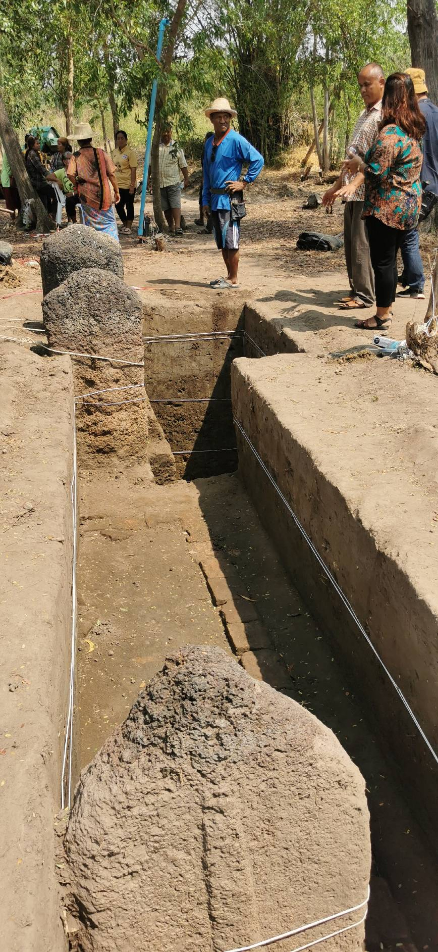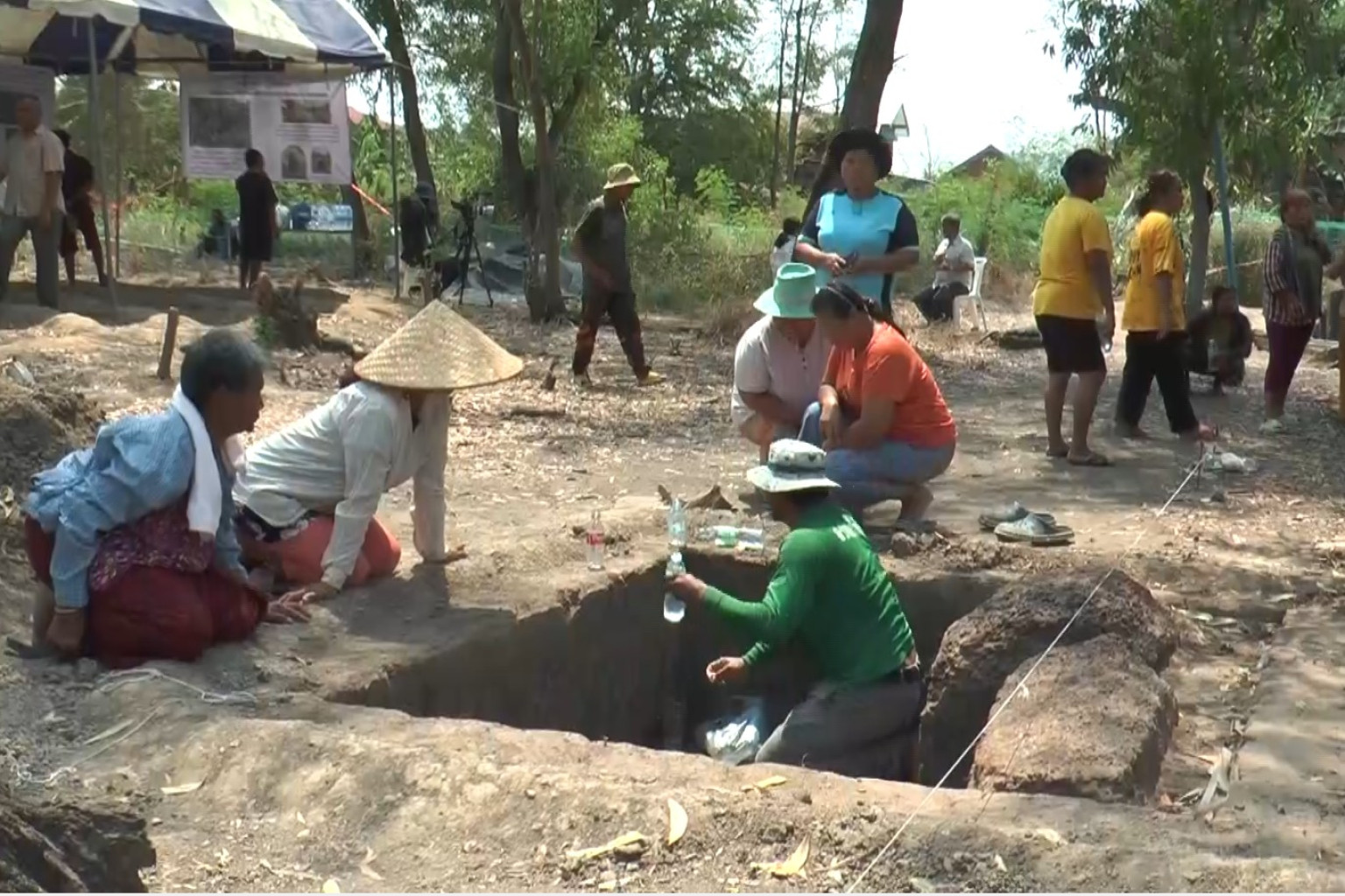 จนท.กลุ่มโบราณคดี สำนักศิลปากรที่ 10 นครราชสีมา ขุดค้นศึกษาแหล่งโบราณคดี พบใบเสมาสมัยทวารวดีกว่า 80 ใบกระจายในพื้นที่ 2 หมู่บ้าน พร้อมชิ้นส่วนภาชนะดินเผา เชื่อเป็นชุมชนโบราณอายุนับพันปี พร้อมให้ความรู้ชาวบ้าน นร.ร่วมดูแลอนุรักษ์ ขณะชาวบ้าน-ผู้สูงอายุจุดธูปเทียนกราบไหว้ นำน้ำจากหลุมที่ขุดค้นไปบูชาและทาตามร่างกายเชื่อเป็นพื้นที่ศักดิ์สิทธิ์
