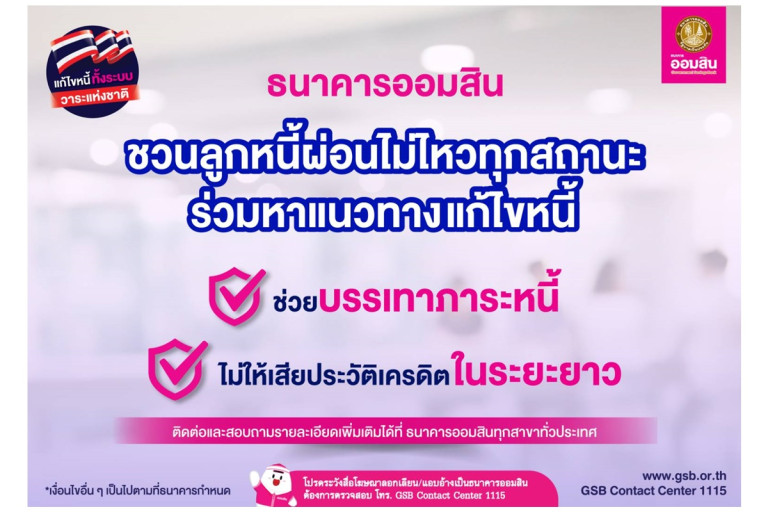 ออมสินแจ้งลูกหนี้ผ่อนไม่ไหวทุกสถานะ ทั้งรายย่อยและ SMEs เร่งติดต่อธนาคารก่อนเสียประวัติเครดิต ตามนโยบายบรรเทาภาระหนี้