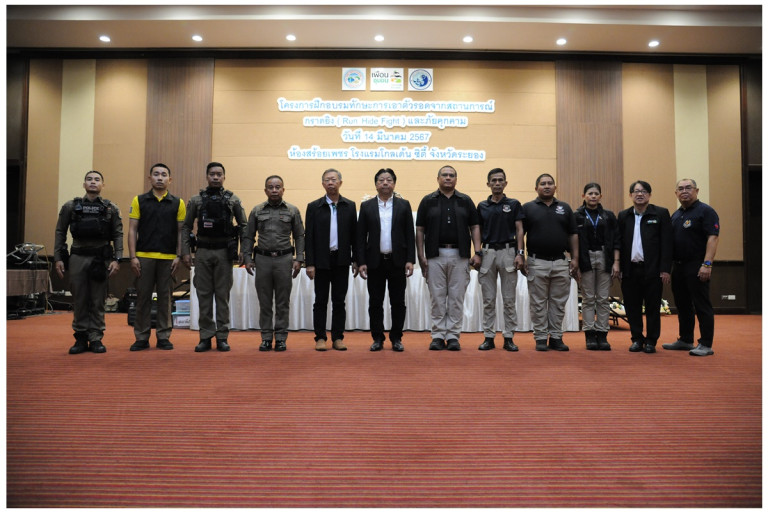นายมนชัย รักสุจริต ผู้จัดการสมาคมเพื่อนชุมชน เปิดเผยว่า เมื่อวันที่ 14 มีนาคม 2567 สมาคมฯร่วมกับงานป้องกันและบรรเทาสาธารณภัย เทศบาลเมืองมาบตาพุด และเทศบาลตำบลบ้านฉาง จ.ระยอง เปิดครอสอบรม เสริมทักษะการเอาตัวรอด จากการเผชิญเหตุฉุกเฉินหลากหลายรูปแบบให้กับบุคลากรทางการศึกษา และผู้ประกอบการ รวมถึงกลุ่มนายตำรวจจาก สภ.มาบตาพุด และ สภ.ห้วยโป่ง เข้าร่วมสังเกตการณ์กว่า 100 คน เป็นการถ่ายทอดวิธีรับมือ การเอาตัวรอด เมื่อเกิดเหตุการณ์รุนแรง เพิ่มความปลอดภัยและลดความสูญเสียต่อชีวิตและทรัพย์สิน ในโครงการ “ฝึกอบรมทักษะการเอาตัวรอดจากสถานการณ์กราดยิง ( Run Hide Fight ) และภัยคุกคาม” ณ ห้องประชุมสร้อยเพชร โรงแรมโกลเด้น ซิตี้ จ.ระยอง
