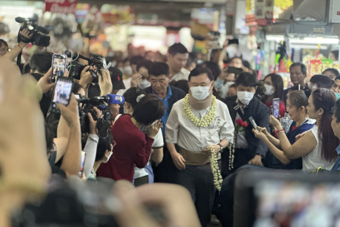 ผู้สื่อข่าวรายงานว่า ได้มีประชาชนมอบพวงมาลัยดอกไม้ ให้นายทักษิณ และระบุว่าอยากให้น.ส.แพทองธาร เป็นนายกฯคนต่อไป อย่างไรก็ตาม ตลอดทางที่เดินเข้าไปภายในตลาดวโรรสบรรดาแม่ค้าและประชาชนที่มาจับจ่ายใช้สอยภายในตลาดต่างดีใจ และตะโกนว่า “เรารักทักษิณ” ดังเป็นระยะๆ โดยนายทักษิณได้เดินทักทายบรรดาแม่ค้าที่เคยรู้จักกันอย่างอารมณ์ดี