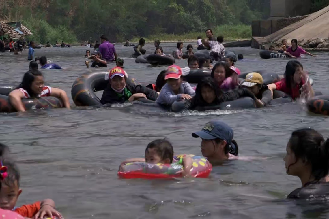 ช่วงนี้อากาศร้อนอบอ้าว อุณหภูมิ 36-40 องศา แม่น้ำปาย จ.แม่ฮ่องสอน ถือเป็นแหล่งท่องเที่ยวทางน้ำที่นิยมอย่างมาก พ่อแม่ผู้ปกครองนำบุตรหลานมาคลายร้อนกันอย่างคึกคัก และยังสร้างรายได้ให้กับพ่อค้าแม่ค้าที่มาเช่าจองเรือนแพไม้ไผ่นำอาหารมาจำหน่าย