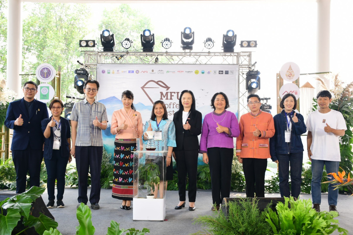 วันที่ 15 มีนาคม 2567 ที่อาคารพลเอกสำเภา ชูศรี (E4) มหาวิทยาลัยแม่ฟ้าหลวง นางสุภาพร โชคเฉลิมวงศ์ ผู้อำนวยการกองบริหารทุนวิจัยและนวัตกรรม 1 สำนักงานการวิจัยแห่งชาติ (วช.) นางอุบลรัตน์ พ่วงภิญโญ รองผู้ว่าราชการจังหวัดเชียงราย และ ศาสตราจารย์ ดร.สุจิตรา วงศ์เกษมจิตต์รองอธิการบดี มหาวิทยาลัยแม่ฟ้าหลวง ร่วมเปิดงาน MFU Coffee Fest 2024 และการประชุมวิชาการ หัวข้อ พัฒนาอุตสาหกรรมกาแฟไทยอย่างยั่งยืน ในระหว่างวันที่ 15-16 มีนาคม 2567 โดยมีผู้เข้าร่วมงานประกอบด้วย เกษตรกร ผู้ประกอบการธุรกิจกาแฟ บุคลากรจากภาครัฐและภาคเอกชน นักวิชาการ นักวิจัย และผู้สนใจ กว่า 300 คน