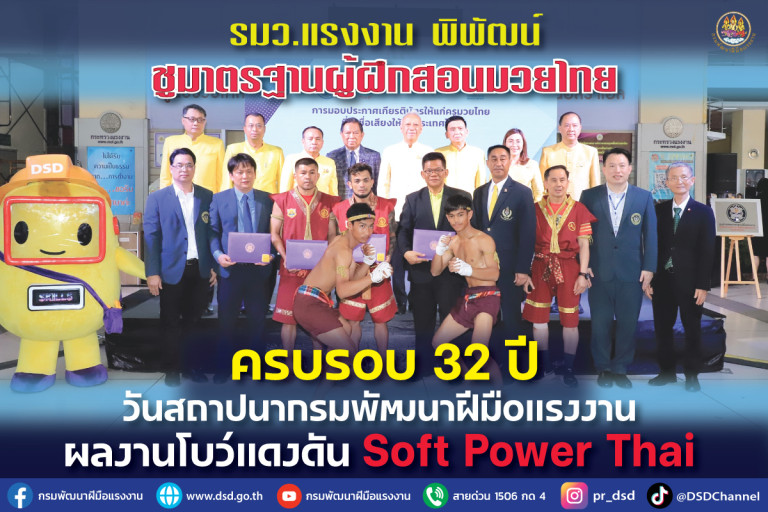 รมว.แรงงาน พิพัฒน์ ชูมาตรฐานผู้ฝึกสอนมวยไทย วันครบรอบ 32 ปีสถาปนากรมพัฒนาฝีมือแรงงาน ผลงานโบว์แดงดัน Soft Power Thai