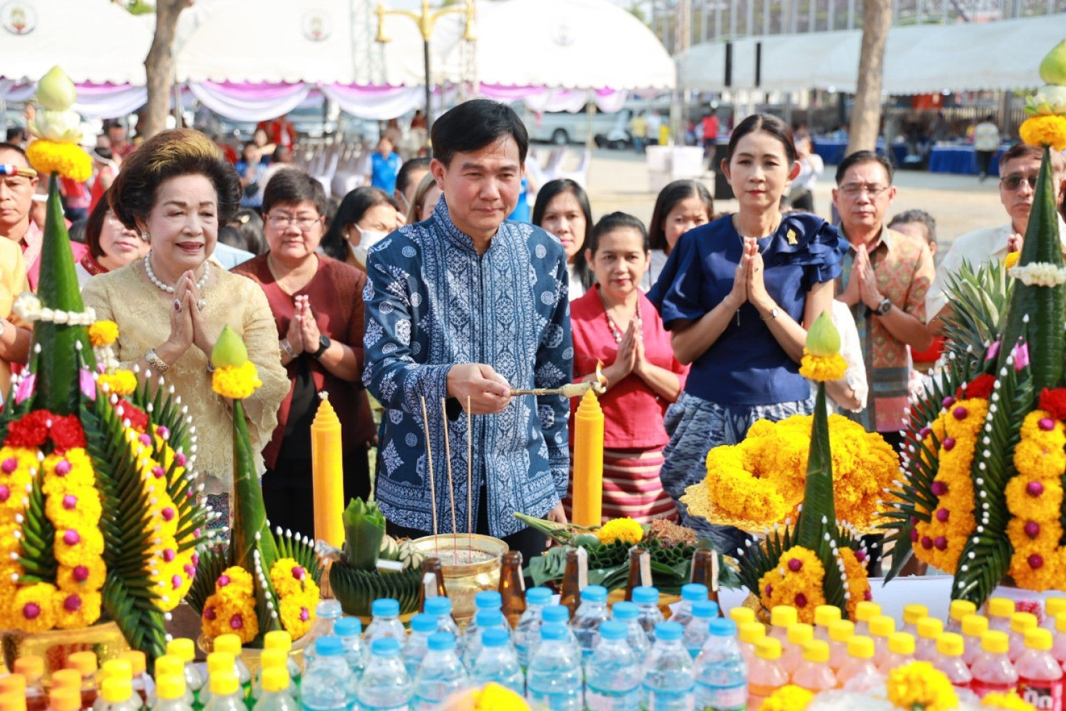 วันที่ 17 มีนาคม 2567 เวลา 09.00 น. นายนิวัฒน์ รุ่งสาคร ผู้ว่าราชการจังหวัดพระนครศรีอยุธยา เป็นประธานในพิธีบวรสรวงพร้อมเปิดงาน วันมวยไทยนายขนมต้ม ประจำปี 2567 โดยมี นางสมทรง พันธุ์เจริญวรกุล นายกองค์การบริหารส่วนจังหวัด นางวัชราภรณ์ รุ่งสาคร นายกเหล่ากาชาดจังหวัดพระนครศรีอยุธยา ดร.ชาญณรงค์ สุหงษา นายกสมาคมสถาบันศิลปะป้องกันตัวแบบไทย หัวหน้าส่วนราชการ สถาบันศิลปะการต่อสู้ป้องกันตัวแบบไทย สมาคมครูมวยไทย นักเรียน หน่วยงานที่เกี่ยวข้อง ครูมวยไทยและ นักกีฬามวยไทย ทั้งชาวไทย ชาวต่างชาติ เข้าร่วมพิธีบวงสรวงดวงวิญญาณของนายขนมต้ม บรมครูแห่งวงการมวยไทย เนื่องในวันที่ระลึกวีระชนไทยนายขนมต้ม ครั้งที่ 20 ประจำปี 2567 ภายในบริเวณงานมีการประกอบพิธีสงฆ์และพิธีพราหมณ์ เพื่อเป็นสิริมงคล ณ สนามกีฬาจังหวัดพระนครศรีอยุธยา