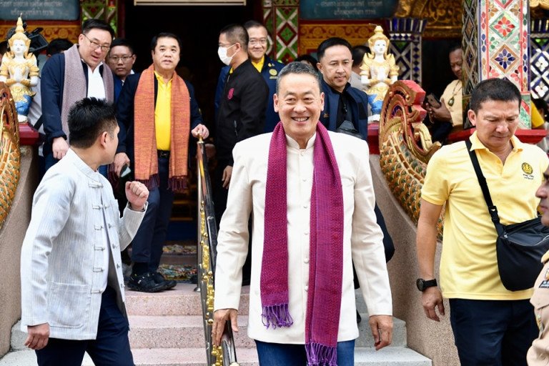 เมื่อเวลา 14.20 น.วันที่ 17 มี.ค. 2567 นายเศรษฐา ทวีสิน นายกรัฐมนตรี และรมว.คลัง เดินทางมายังบ้านดอนหลวง ต.แม่แรง อ.ป่าซาง จ.ลำพูน พร้อมด้วยนายสุริยะ จึงรุ่งเรืองกิจ รมว.คมนาคม เพื่อพบปะประชาชน โดยนายกฯเดินถ่ายรูปกับประชาชนที่มารอต้อนรับบริเวณด้านหน้า และรับมอบผ้าพันคอ ก่อนที่จะเดินเข้ามายังภายในวัด ดอนหลวง รับฟังบรรยายสรุปปัญหาหมอกควันและไฟป่าของจ.ลำพูน