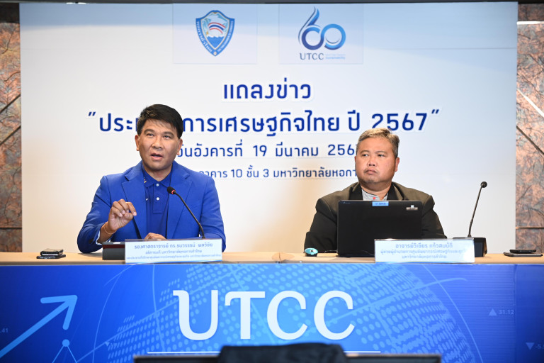 นายธนวรรธน์ พลวิชัย ประธานที่ปรึกษาศูนย์พยากรณ์เศรษฐกิจและธุรกิจ และอธิการบดีมหาวิทยาลัยหอการค้าไทยเปิดเผยว่า ได้ปรับลดประมาณการเศรษฐกิจไทยปี 2567 ลงเหลือ 2.6% จากเดิมที่เคยคาดว่าจะขยายตัว 3.2% โดยสาเหตุที่ต้องปรับลดจีดีพีลง เนื่องจากปริมาณการค้าโลกมีแนวโน้มขยายตัวต่ำกว่าที่คาดไว้เดิม การอุปโภคบริโภคภาคเอกชน และการลงทุนภาคเอกชน มีแนวโน้มชะลอตัว การเบิกจ่ายงบประมาณทั้งรายจ่ายประจำและรายจ่ายลงทุน ทำได้ต่ำกว่าที่คาดไว้ ขณะเดียวกันยังประเมินว่า ในปี 2567 การส่งออกจะขยายตัว 2.8% (จากเดิม 3.0%), อัตราเงินเฟ้อทั่วไปอยู่ที่ 1% (จากเดิม 2.0%), จำนวนนักท่องเที่ยวต่างชาติ 35 ล้านคน รายได้จากนักท่องเที่ยวต่างชาติ 1.61 ล้านล้านบาท (จากเดิม 1.48 ล้านล้านบาท)