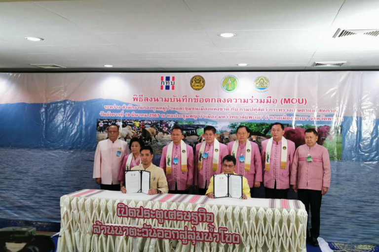 เมื่อวันที่ 19 มีนาคม 2567 เมื่อเวลา 09.30 น. นายสมศักดิ์ เทพสุทิน รองนายกรัฐมนตรี พร้อมด้วย ร.อ.ธรรมนัส พรหมเผ่า รัฐมนตรีว่าการกระทรวงเกษตรและสหกรณ์ นางพวงเพ็ชร ชุดละเอียด รัฐมนตรีประจำสำนักนายกรัฐมนตรี นายไชยา พรหมา รัฐมนตรีช่วยว่าการกระทรวงเกษตรและสหกรณ์ นายอนุชา นาคาศัย รัฐมนตรีช่วยว่าการกระทรวงเกษตรและสหกรณ์ นายธีระพงษ์ วงศ์ศิวะวิลาศ ปลัดสำนักนายกรัฐมนตรี นายประยูร อินสกุล ปลัดกระทรวงเกษตรและสหกรณ์ ร่วมเป็นสักขีพยานในพิธีลงนาม MOU เรื่องการส่งเสริมและให้ความช่วยเหลือทางวิชาการและเทคโนโลยีในการพัฒนาอาชีพที่เกี่ยวข้องกับปศุสัตว์ให้กับกองทุนหมู่บ้านและชุมชนเมือง ระหว่างกองทุนหมู่บ้านฯ กับ กรมปศุสัตว์ ที่อาคารศิลปวัฒนธรรม มหาวิทยาลัยพะเยา