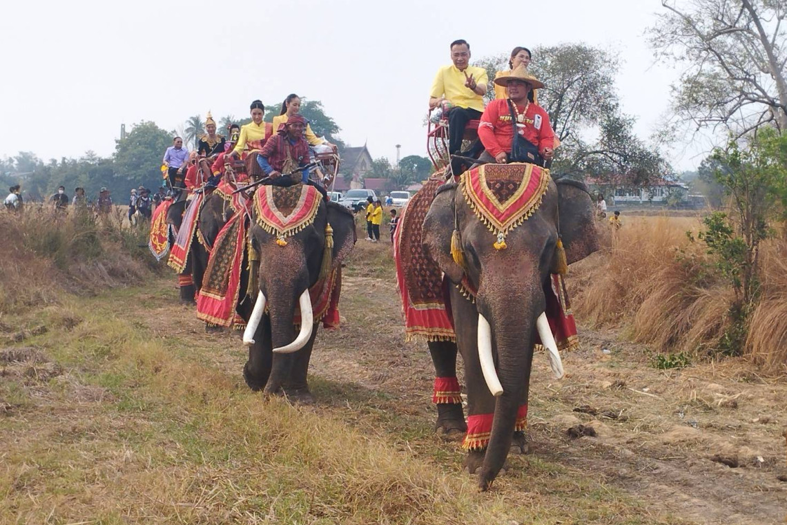 วันที่ 19 มี.ค.67 ผู้สื่อข่าวรายงานว่าที่ทุ่งนาบ้านทุ่งแต้ ตำบลทุ่งแต้อำเภอเมืองยโสธร จังหวัดยโสธร นายชรินทร์ ทองสุข ผู้ว่าราชการจังหวัดยโสธรพร้อมด้วยนางสินีนาฏ ทองสุข นายกเหล่ากาชาดจังหวัด ประธานแม่บ้านมหาดไทยจังหวัดยโสธรนั่งช้างนำแห่พระเวสสันดรเข้าเมืองโดยพระสงฆ์ทำพีธีที่ทุ่งนาก่อนที่จะแห่ขบวนเข้ามาที่วัดบูรพารามบ้านทุ่งแต้ ตำบลทุ่งแต้ อำเภอเมืองยโสธรโดยมี นายอำเภอเมืองยโสธร ปลัดอำเภอ ผู้นำท้องที่ท้องถิ่นและประชาชนร่วมขบวนแห่เป็นจำนวนมาก
