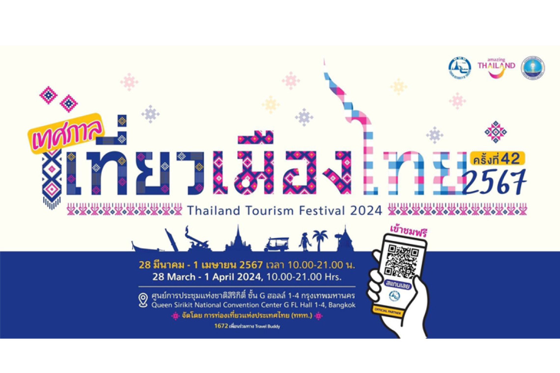 การท่องเที่ยวแห่งประเทศไทย (ททท.) จัดงาน “เทศกาลเที่ยวเมืองไทย ครั้งที่ 42” ในวันที่ 28 มีนาคม-1 เมษายน 2567 ณ ศูนย์การประชุมแห่งชาติสิริกิติ์ ตอกย้ำเที่ยวกับ ททท. มีแต่ “ความสุข” นำเสนอ 9 โซนหลัก ส่งมอบความมหัศจรรย์ของท่องเที่ยวไทยทุกมิติ สร้างแรงบันดาลใจเดินทางรับความสุขทันที ที่เที่ยวไทยตลอดทั้งปี