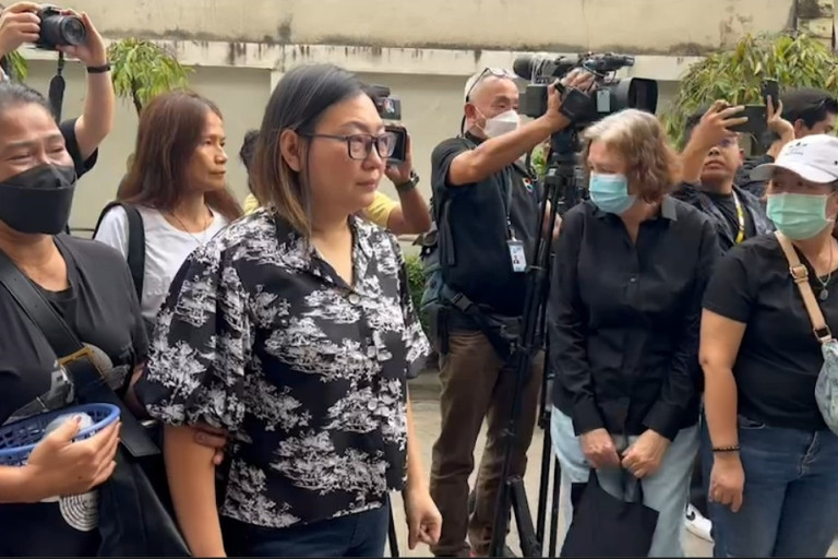 คุณ เอ๋ อรชัญญาช์ ภรรยา ของ เมฆ วินัย ไกรบุตร และญาติๆ เดินทางมารับร่างของคุณเมฆ หลังเสียชีวิตเมื่อคืนที่ผ่านมา เพื่อนำไปประกอบพิธีทางศาสนา ที่วัดศิริพงษ์ธรรมนิมิตร