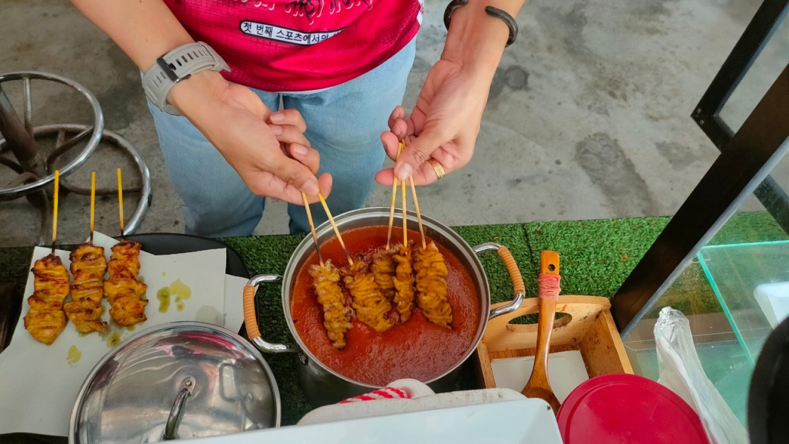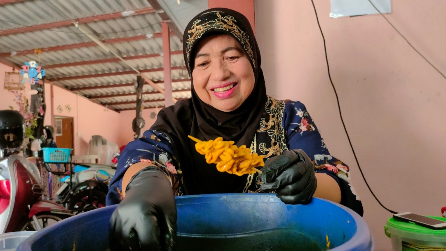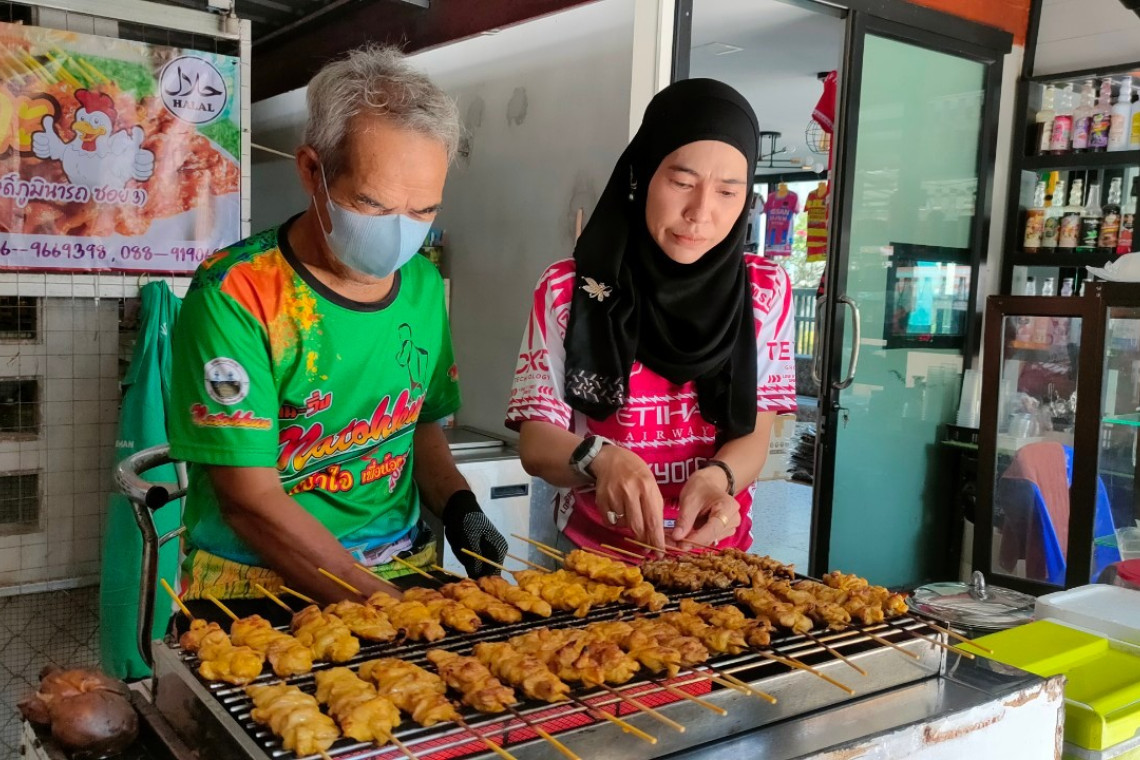 ซึ่งที่นี่มีไก่ย่าง 6 เมนู ได้แก่ ไก่ย่างนมสด ไก่ย่างเทอริยากิ ไก่ย่างพริกไทยดำ เนื้อโคขุนย่าง และกำลังได้รับความชื่นชอบ คือเมนูไส้ไก่กอและย่าง เป็นการนำไส้ไก่ที่ทำความสะอาดอย่างดีมาคลุกกับผงขมิ้น หอมอบอวล ขายดีทุกเมนู เพียงไม้ละ 10 บาท และข้าวเหนียวห่อละ 5 บาท โดยเฉพาะในเดือนรอมฏอน หรือ เดือนถือศีลอดพี่น้องมุสลิม จะขายดีเป็นเท่าตัวจากวันละ 100 ไม้ เพิ่มเป็น 200 ไม้ถึง 250 ไม้