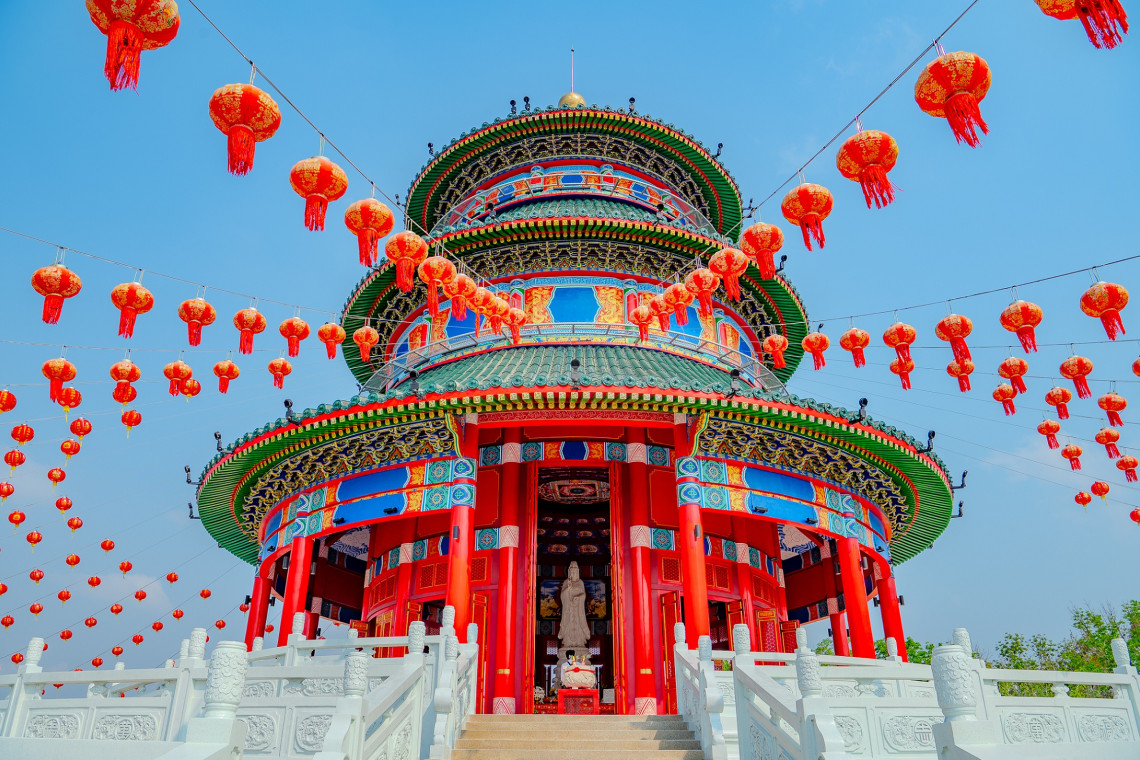 พร้อมกันนี้ วิหาร “อี่ ทง เทียน ไท้” เป็นวิหารที่จำลองแบบมาจากวิหารเทียนถาน กรุงปักกิ่ง ซึ่งสร้างขึ้นถูกต้องตามหลักฮวงจุ้ยทุกประการ เริ่มก่อสร้างมาตั้งแต่ปี 2558 โดยมูลนิธิ ดร.เทียม โชควัฒนา และคุณบุณยสิทธิ์ โชควัฒนา ประธานเครือสหพัฒน์ ด้วยเงินบริจาคจากผู้มีจิตศรัทธาในองค์พระโพธิสัตว์กวนอิม วิหารแห่งนี้ได้รับการออกแบบที่สื่อให้เห็นถึงแนวคิดเรื่องจักรวาล ภพภูมิ ความสมบูรณ์และมั่งมี ภายในวิหารประดิษฐานองค์พระโพธิสัตว์กวนอิม ซึ่งเป็นหนึ่งในหลายพระโพธิสัตว์ตามคติความเชื่อของพุทธศาสนานิกายมหายาน แกะสลักมาจากก้อนหยกชิ้นใหญ่โดยช่างแกะสลักชาวจีน ประทับยืนบนหลังพญามังกรเวียนว่ายกลางมหาสมุทร ซึ่งพญามังกรเปรียบได้กับความมั่งคั่งร่ำรวย สายน้ำเปรียบได้กับความลื่นไหลราบรื่น สำเร็จ ร่ำรวย