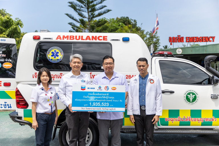 กรมเชื้อเพลิงธรรมชาติ กระทรวงพลังงาน ร่วมกับบริษัท เชฟรอน ออฟชอร์ (ประเทศไทย) จำกัด และบริษัทร่วมทุนแปลงสำรวจหมายเลข B8/32 อันประกอบด้วย บริษัท มิตซุยออยล์ เอ็กซพลอเรชั่น จำกัด บริษัท ปตท.สำรวจและผลิตปิโตรเลียม จำกัด (มหาชน) บริษัท พลังโสภณ จำกัด และบริษัท คริสเอ็นเนอร์ยี่ (กัลฟ์ ออฟ ไทยแลนด์) จำกัด มอบรถพยาบาลเคลื่อนที่ขับเคลื่อนสี่ล้อพร้อมอุปกรณ์ช่วยชีวิตฉุกเฉิน 1 คัน มูลค่ากว่า 1.9 ล้านบาท เพื่อสนับสนุนโรงพยาบาลเกาะพะงัน จังหวัดสุราษฎร์ธานี โดยได้รับเกียรติจาก นางวรรณฑกา ธิติภาทร ผู้เชี่ยวชาญเฉพาะด้านความปลอดภัยและสิ่งแวดล้อม ผู้แทนกรมเชื้อเพลิงธรรมชาติ เป็นประธานในพิธี การมอบรถพยาบาลฉุกเฉินในครั้งนี้ มีวัตถุประสงค์เพื่อเสริมศักยภาพการปฏิบัติงานช่วยชีวิตผู้ป่วยเมื่อมีเหตุฉุกเฉินได้อย่างมีประสิทธิภาพ ช่วยให้ผู้ป่วยสามารถเข้ารับบริการทางการแพทย์ได้อย่างทั่วถึงมากขึ้น รวมทั้งเพิ่มศักยภาพโรงพยาบาลในการส่งต่อผู้ป่วยหนักไปยังโรงพยาบาลภูมิภาค
