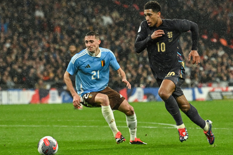 นาทีที่ 90+5 อังกฤษ ตีเสมอ 2-2 ช่วงทดเวลาบาดเจ็บที่เลยมาพิคฟอร์ดเตะบอลยาวมาแล้วเบลเยี่ยมไม่ยอมเคลียร์ไปบังทำให้แมดดิสันแย่งมาได้ก่อนจ่ายย้อนมาให้เบลลิ่งแฮม กดเน้นๆ ผ้านเซลส์เข้าไป 2-2 จบเกมด้วยสกอร์นี้