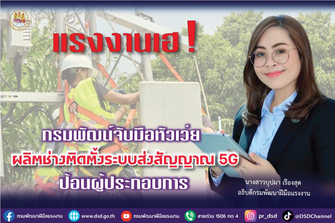 กรมพัฒนาฝีมือแรงงานร่วมกับบริษัทหัวเว่ย เทคโนโลยี (ประเทศไทย) จำกัด เปิดฝึกอบรมการติดตั้งระบบส่งสัญญาณโทรคมนาคม 4G และ 5G กว่า 600 คน ฝึกจบมีงานรองรับ ผู้ประกอบการแจ้งรับไม่อั้น