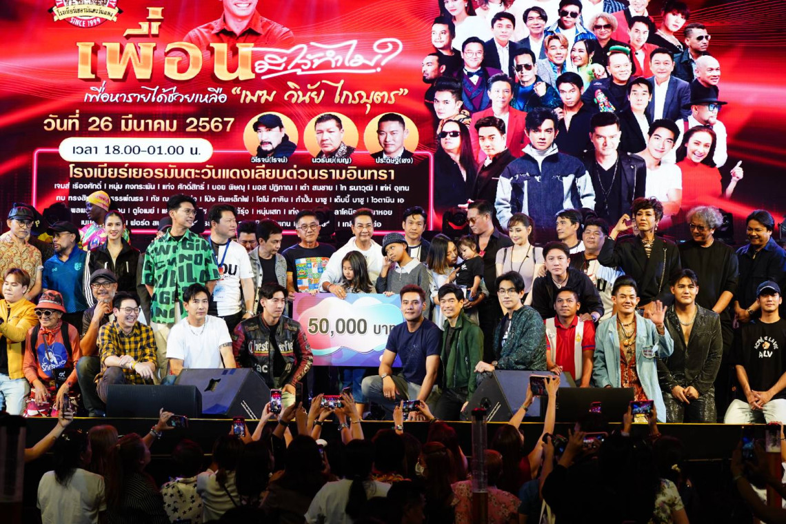 นายคงกระพัน แสงสุริยะ(หนุ่ม) ศิลปิน นักร้อง ทั่วฟ้าเมืองไทย นายนวธันย์ ธวัชวงศ์เดชากุล (เบญ) และ นายวิโรจน์ วงค์วิเศษศิริ (โรจน์) ร่วมกับ โรงเบียร์เยอรมันตะวันแดง สาขาเลียบทางด่วนรามอินทรา , บริษัท มาสเตอร์พีซออร์กาไนเซอร์ จำกัด โดย นายประดิษฐ์ สมดังเจตน์ (เชง) ร่วมกันจัดคอนเสิร์ต “เพื่อนมีไว้ทำไม?” เพื่อหารายได้ช่วยเหลือ เมฆ วินัย ไกรบุตร