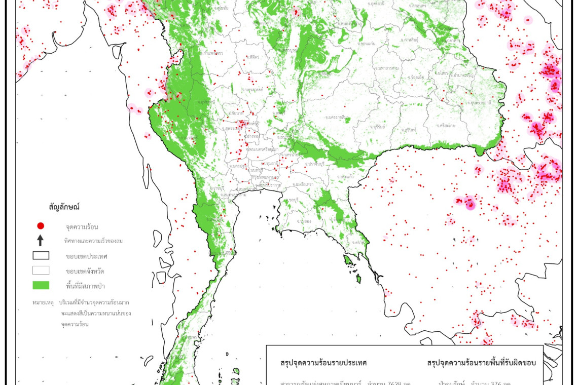 สรุปสรุปสถิติจุดความร้อน (Hotspot) จากข้อมูลดาวเทียม Suomi NPP ระบบ VIIRS ในพื้นที่ประเทศไทย ได้ที่ https://fire.gistda.or.th/dashboard.html
