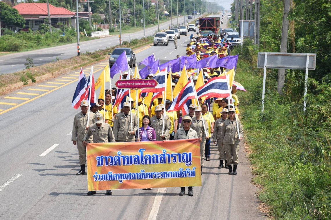 วันที่ 29 มี.ค.67 นายมิตร บุญเพ็ง นายกองค์การบริหารส่วนตำบลโคกสำราญ อำเภอเลิงนกทา จังหวัดยโสธร นำคณะผู้บริหาร สมาชิกสภา อบต. พนักงานส่วนตำบล พนักงานจ้าง องค์การบริการบริหารส่วนตำบลโคกสำราญ ผู้นำชุมชน และประชาชนชาวตำบลโคกสำราญ จัดกิจกรรมเพื่อแสดงออกถึงความจงรักภักดีเทิดทูนสถาบันชาติ ศาสนาและพระมหากษัตริย์ และเดินรณรงค์ต่อต้านยาเสพติด ภายใต้แนวคิด มุ่งมั่น แก้ไข ขจัดภัยยาเสพติดในพื้นที่ตำบลโคกสำราญ อีกทั้งได้ประกาศเจตนารมณ์ “รวมพลังชาวตำบลโคกสำราญ” ประกอบด้วย