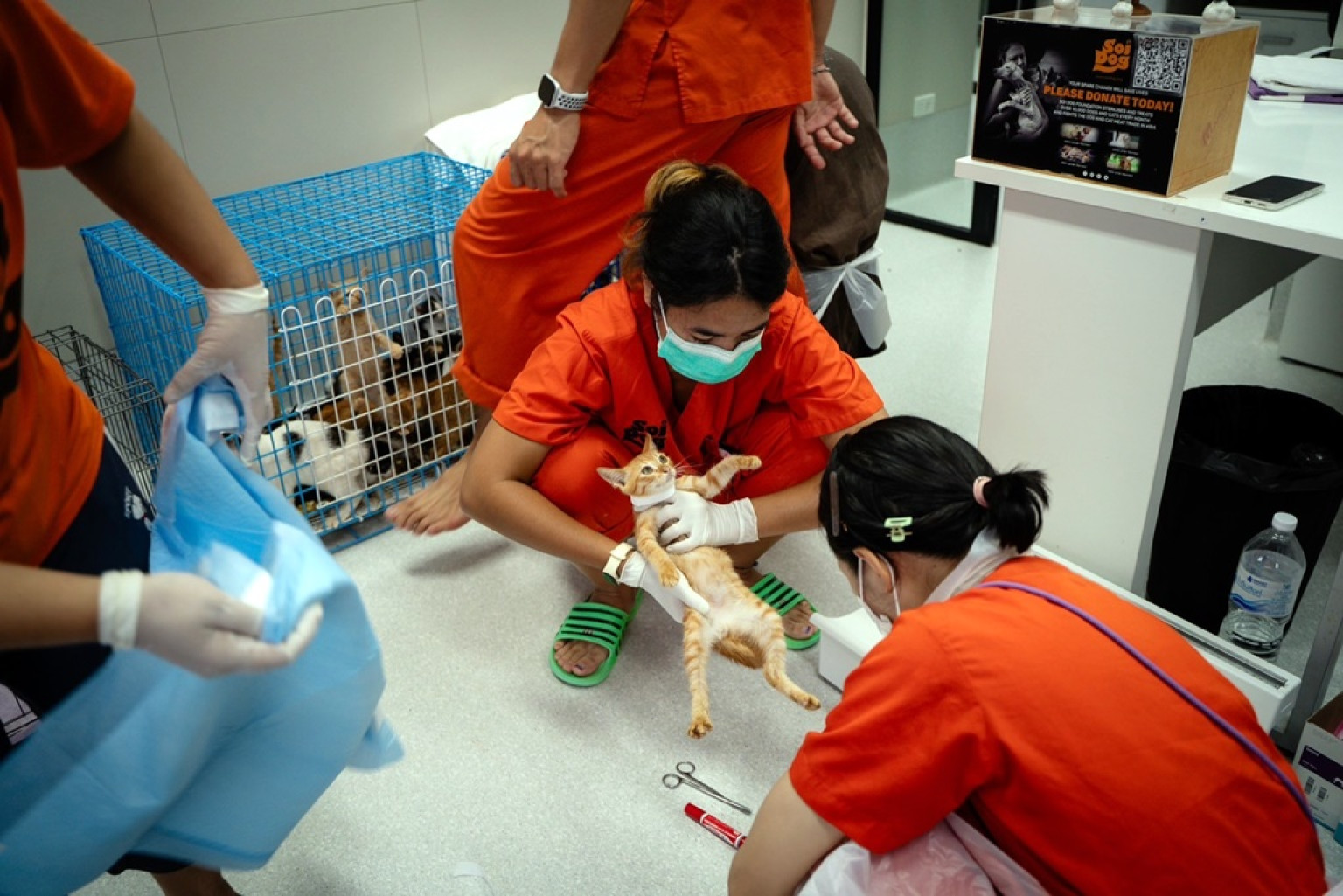 จากนั้นได้มีพลเมืองดีแจ้งเหตุมาที่มูลนิธิฯ สัตวแพทย์ได้ให้การช่วยเหลือลูกแมวเป็นกรณีฉุกเฉินทันทีเนื่องจากร่างกายอ่อนเพลียและขาดน้ำอย่างรุนแรงจากการเดินทางระยะไกลและตากฝน ประกอบกับการกักขังรวมกันจำนวนมากทำให้เกิดการแพร่กระจายของเชื้อโรคไปสู่ลูกแมวด้วยกันเอง จนทำให้มีลูกแมวเสียชีวิต 12 ตัว ระหว่างการรักษา