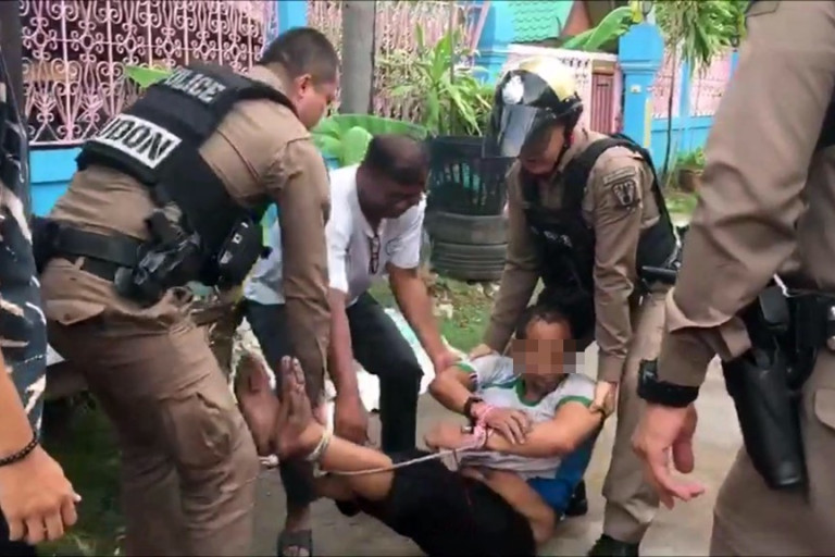 เมื่อเวลา 07.30 น. วันที่ 30 มี.ค.67 ตร.สภ.เมืองอุดรธานี รับแจ้งจากชาวบ้านที่อยู่ในซอยประชาสันติ 10 ต.หมากแข้ง อ.เมือง จ.อุดรธานี แจ้งว่า ได้ช่วยกันจับหนุ่มคลั่งไล่ทำร้ายชาวบ้านเอาไว้ได้ และตรวจสอบในบ้านของหนุ่มคลั่งรายนี้พบว่า มีคนเสียชีวิตภายในบ้านด้วยเป็นภรรยาของคนก่อเหตุ หลังรับแจ้งจึงเดินทางไปพบชาวบ้านกำลังจับนายบุญช่วย (ขอสงวนนามสกุล) อายุ 49 ปี หนุ่มคลั่งรายนี้ ตร.จึงควบคุมตัวขึ้นรถสายตรวจไปยัง สภ.เมืองอุดรธานี โดยมีคลิปวงจรปิดในซอยจะเห็นนายบุญช่วยวิ่งไล่ทำร้ายชาวบ้าน โดยใช้กำปั้นไล่ทุบชายคนหนึ่งที่ไม่รู้อีโหน่อีเหน่ จากนั้นก็เห็นชาวบ้านหลายคนเข้ามาช่วยกันจับนายบุญช่วยล็อคคอลงกับพื้น แม้จะมีชาวบ้าน 4-5 คนจับนายบุญช่วย แต่กระนั้นก็ยังฟิตฟัดพยายามดิ้นหลุด ชาวบ้านจึงใช้เชือกมัดแขนมัดขาเอาไว้ จนมีตร.สายเข้าตรวจเข้ามาคุมตัวอีกทีหนึ่ง โดยชาวบ้านแจ้งว่าภายในบ้านของนายบุญช่วยพบศพเมียนอนตายในมุ้งด้วย สงสัยนายบุญช่วยจะฆ่าเมียตัวเองหมกภายในบ้าน