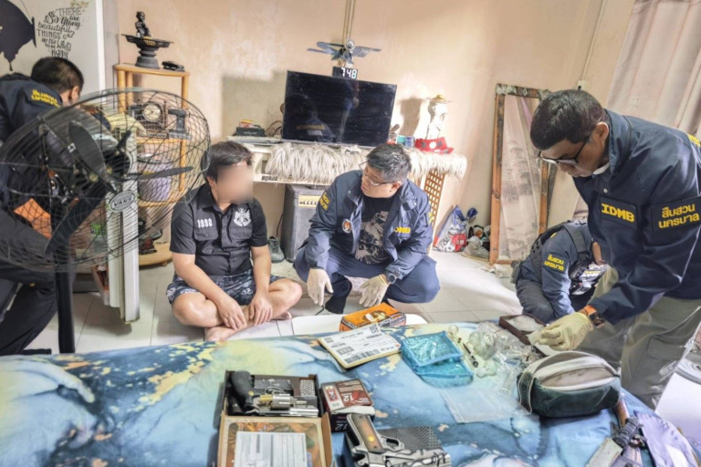 เมื่อวันที่ 30 มี.ค.พล.ต.ท.ธิติ แสงสว่าง ผบช.น. พล.ต.ต.นพศิลป์ พูลสวัสดิ์ รอง ผบช.น.พล.ต.ต.ธีรเดช ธรรมสุธีร์ ผบก.สส.บช.น. พ.ต.อ.วรพจน์ รุ่งกระจ่าง รอง ผบก สส.บช.น. พ.ต.อ.จักราวุธ คล้ายนิล ผกก.วิเคราะห์ข่าวและเครื่องมือพิเศษ บก.สส.บช.น. พ.ต.ท.พัชรพงษ์ กาญจนวัฎศรี พ.ต.ท.นิธิ ปิยะพันธุ์ รอง ผกก.วิเคราะห์ข่าวและเครื่องมือพิเศษ บก.สส.บช.น. สั่งการให้ พ.ต.ท.ศราวุฒิ พิมพ์สุภาพร พ.ต.ต.ทศรัสมิ์ กิติธารา สว.กก.วิเคราะห์ข่าวฯ พร้อมกำลังชุดปฎิบัติการที่ 1-4 บก.สส.บช.น. จับกุมตัว "เอก ร่มเกล้า" อายุ 38 ปี ความผิดฐาน ”มียาเสพติดให้โทษประเภทที่ 1 (เมทแอมเฟตามีน หรือยาไอซ์) ไว้ในความครอบครองโดยไม่ได้รับอนุญาต” และ" มีอาวุธปืนและเครื่องกระสุนปืนไว้ในครอบครองโดยไม่ได้รับอนุญาต ตาม พ.ร.บ.อาวุธปืน เครื่องกระสุนปืน วัตถุระเบิด ดอกไม้เพลิงและสิ่งเทียมอาวุธปืน พ.ศ.2490 ” โดยจับกุมได้ที่บ้านเลขที่ 45/4 ซ.เคหะร่มเกล้า 64 แขวงคลองสองต้นนุ่น เขตลาดกระบัง กทม.