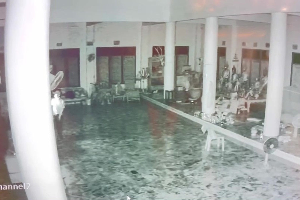 ต่อมาตำรวจได้ตรวจสอบภาพจากกล้องวงจรปิด พบคนร้ายเป็นชายอายุประมาณ 16-20ปี สวมกางเกงขายาวสีดำ เสื้อยืดสีขาว รองเท้าแตะ ลักษณะที่สังเกตเด่นชัดคือ แขนข้างซ้ายห้อย ไม่แกว่งขณะเดินคล้ายคนพิการ เดินขึ้นทางบันไดศาลา ช่วงเวลา 04.58 น.