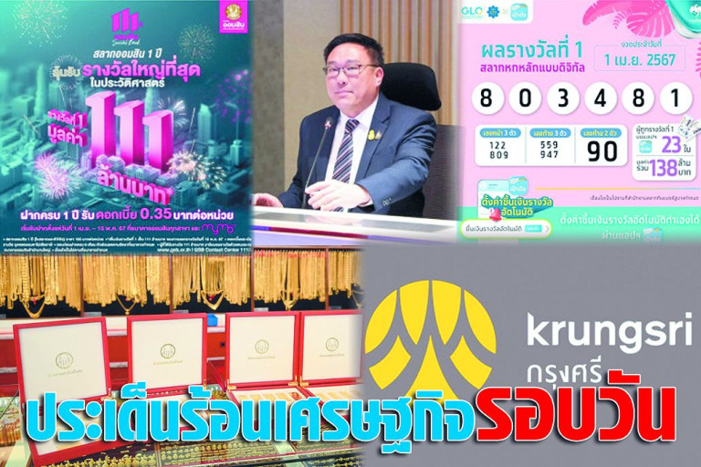 -ธนาคารออมสิน ออกแคมเปญฉลองในวาระวันคล้ายวันสถาปนาธนาคารออมสินครบรอบ 111 ปี กับสลากออมสินพิเศษ 1 ปี แจกรางวัลที่ 1 มูลค่า 111 ล้านบาท เริ่มเปิดรับวันที่ 1 เม.ย. 67 ถึงวันที่ 15 พ.ค 67 ลุ้นรวย 16 พ.ค.67