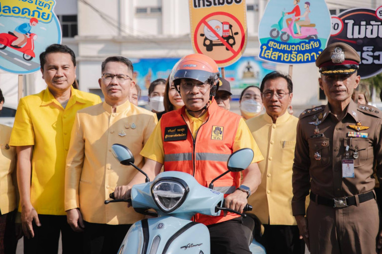 วันที่ 1 เม.ย.67 เวลา 08.30 น. ที่บริเวณประตูทางเข้าศาลากลางจังหวัดยโสธร นายชรินทร์ ทองสุข ผู้ว่าราชการจังหวัดยโสธร เปิดกิจกรรม Kick off “วาระจังหวัดยโสธร ว่าด้วยการสวมหมวกนิรภัย 100 เปอร์เซ็นต์” โดยมี นายสุวัฒน์ เข็มเพชร รองผู้ว่าราชการจังหวัดยโสธร ปลัดจังหวัดยโสธร หัวหน้าสำนักงานป้องกันและบรรเทาสาธารณภัยจังหวัดยโสธร ประชาสัมพันธ์จังหวัดยโสธร หัวหน้าส่วนราชการ เจ้าหน้าที่ และสื่อมวลชนเข้าร่วมเพื่อร่วมกันส่งเสริมการสวมหมวกนิรภัยหรือหมวกกันน็อคของเจ้าหน้าที่ภาครัฐที่ขับขี่และซ้อนท้ายรถจักรท้ายรถจักรยานยนต์ผ่านเข้า – ออก ในเขตพื้นที่ศาลากลางจังหวัดยโสธร ให้สวมหมวกกันน็อค 100 เปอร์เซ็นต์ เพื่อความปลอดภัยของผู้ขับขี่และผู้ซ้อนท้าย ตลอดจนเป็นแบบอย่างที่ดีแก่ประชาชนที่มาติดต่อราชการที่ศาลากลางจังหวัดยโสธร