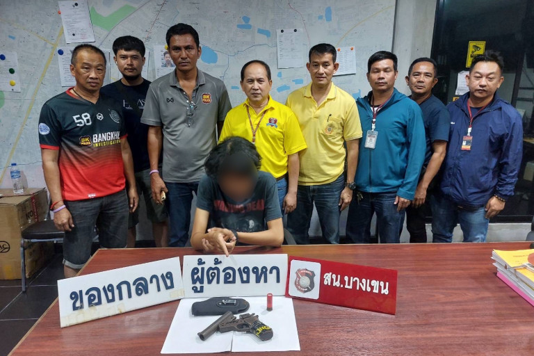 เมื่อเวลา 20.00 น.วันที่ 1 เม.ย.67 พ.ต.อ.อนันต์ วรสาตร์ ผกก.สน.บางเขน สั่งการให้ พ.ต.ท.โกศลปิยะ สีมา รอง ผกก.สส.สน.บางเขน,พ.ต.ท.สมใจ รอดยัง สว.กก.สส.บก.น.2, พ.ต.ท.พรชัย ว่องประเสริฐการ สว.สส.สน.บางเขน, พ.ต.ต.ยุรนันท์ เพชรมณี สว.สส.,กำลังฝ่ายสืบสวน สน.บางเขน และชุด กก.สส.บก.น.2 ร่วมกันจับกุม ดช.เค้ก(นามสมมุติ)อายุ 14 ปี พร้อมของกลางอาวุธปืนสั้นไทยประดิษฐ์ จำนวน 1 กระบอก,เครื่องกระสุนปืน ขนาด .38 จำนวน 3 นัด, ขนาด .45 จำนวน 1 นัด และนายไอซ์(นามสมมุติ)อายุ 17 ปีพร้อมของกลางอาวุธปืนลูกซองสั้นไทยประดิษฐ์ 1 กระบอกและกระสุนปืน 1 นัด โดยจับกุมตัวได้ที่บ้านพักแขวงอนุสาวรีย์ เขตบางเขน กทม.