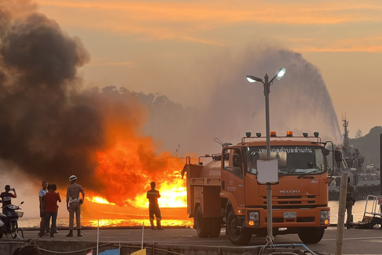 เมื่อเวลาประมาณ 18.00 น. วันที่ 2 เมษายน 2567 ผู้สื่อข่าวได้รับแจ้งว่าเกิดเหตุเรือนำเที่ยวทะเลอันดามัน ระเบิดจนเพลิงลุกไหม้ทั้งลำ อยู่กลางลำคลองท่าเทียบเรือบ้านทับละมุ ต.ลำแก่น อ.ท้ายเหมือง จ.พังงา ทางนางสาวเฉลิมศรี แพใหญ่ นายกเทศมนตรีตำบลลำแก่น และพล.ร.ต.กนกพล พิมพ์ทอง ผู้บัญชาการฐานทัพเรือพังงา ได้สั่งการให้หน่วยดับเพลิงเทศบาลตำบลลำแก่น และหน่วยดับเพลิงฐานทัพเรือพังงา และเรือดับเพลิง เข้าให้การช่วยเหลือ พบว่าเป็นเรือนำเที่ยวแบบดำน้ำลึกขนาดใหญ่ เพลิงกำลังโหมลุกไหม้จากกระแสลมแรง ซึ่งต้องระวังไม่ให้เรือที่เพลิงลุกไหม้ไหลไปยังเรือที่จอดใกล้เคียง ก่อนที่จะควบคุมเพลิงไว้ได้ใช้เวลาประมาณ 1ชั่วโมง