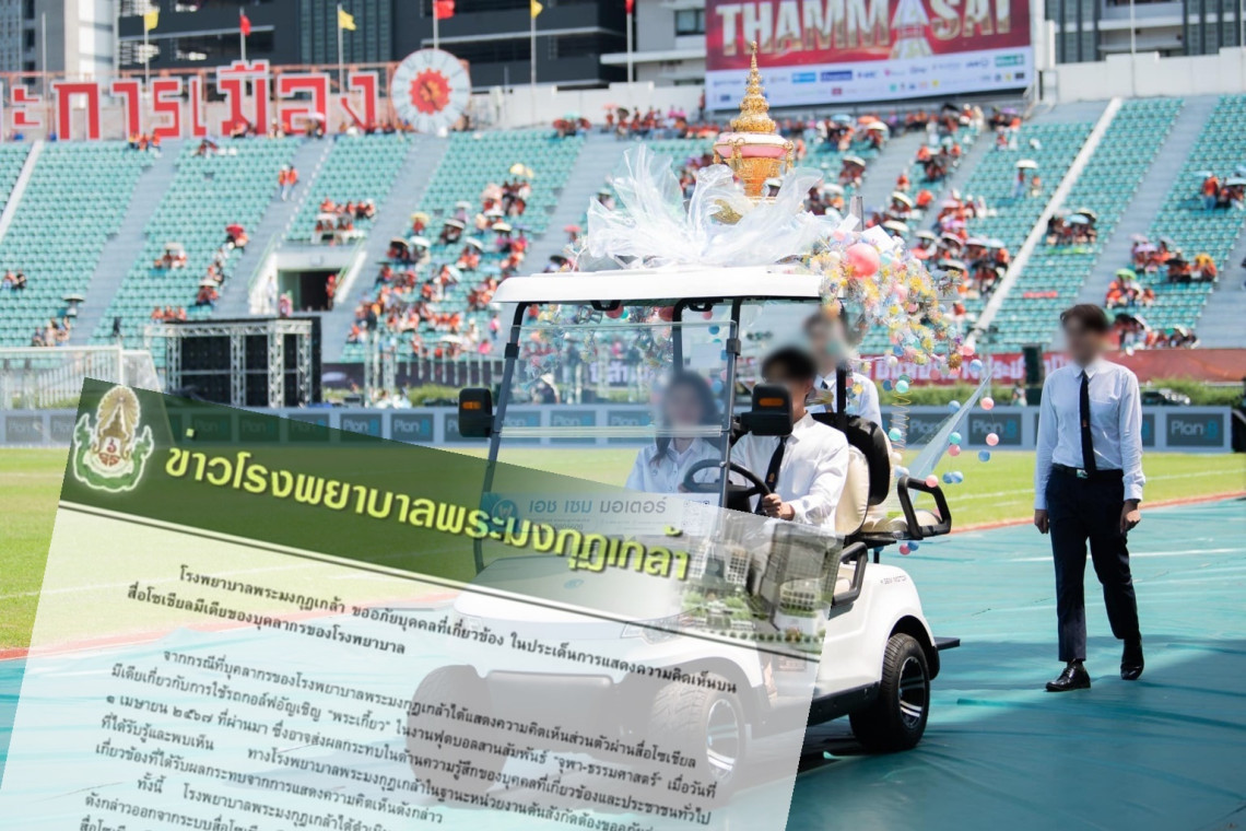 จากกรณีที่บุคลากรของโรงพยาบาลพระมงกุฎเกล้าได้แสดงความคิดเห็นส่วนตัวผ่านสื่อโซเชียลมีเดียเกี่ยวกับการใช้รถกอล์ฟอัญเชิญ "พระเกี้ยว" ในงานฟุตบอลสานสัมพันธ์ "จุฬา-ธรรมศาสตร์" เมื่อวันที่ 1 เมษายน 2567 ที่ผ่านมา ซึ่งอาจส่งผลกระทบในด้านความรู้สึกของบุคคลที่เกี่ยวข้องและประชาชนทั่วไปที่ได้รับรู้และพบเห็น ทางโรงพยาบาลพระมงกุฎเกล้าในฐานะหน่วยงานต้นสังกัดต้องขออภัยต่อบุคคลที่ เกี่ยวข้องที่ได้รับผลกระทบจากการแสดงความคิดเห็นดังกล่าว
