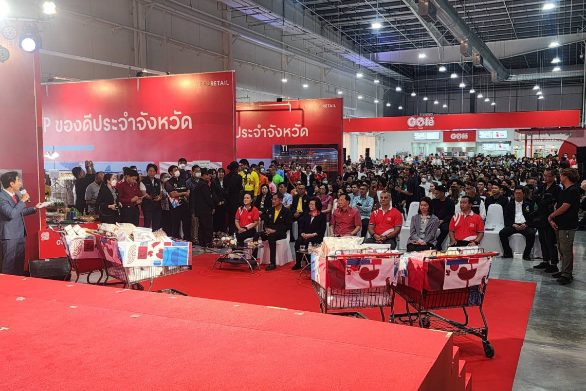 บรรยากาศพิธีเปิดศูนย์ค้าส่งวัตถุดิบอาหารฯ มี คุณสุชาดา อิทธิจารกุล ประธานเจ้าหน้าที่บริหาร กลุ่มธุรกิจในประเทศไทยและต่างประเทศ บริษัท เซ็นทรัล ฟู้ด โฮลเซลล์ จำกัด ในเครือเซ็นทรัส รีเทล , คุณจิตตินันท์ หวั่งหลี กรรมการผู้จัดการสายงานธุรกิจและการตลาด ศูนย์การค้าฟิวเจอร์พาร์คและสเปลล์ , พล.ต.ท.คำรณวิทย์ ธูปกระจ่าง นายก อบจ.ปทุมธานี และพันธมิตรธุรกิจ แขกผู้มีเกียรติ ร่วมเป็นสักขีพยานในการเปิดศูนย์การค้าฯใหม่พื้นที่รังสิต สำหรับ โก โฮลเซลล์ (GO Wholesale) ศูนย์ค้าส่งวัตถุดิบอาหารเพื่อผู้ประกอบการ เพราะโดยรอบมีผู้ประกอบการร้านอาหาร ผู้เกี่ยวข้องในธุรกิจอาหาร ตลอดจนร้านค้าปลีกขนาดเล็ก หรือโชห่วย ตั้งอยู่เป็นจำนวนมาก