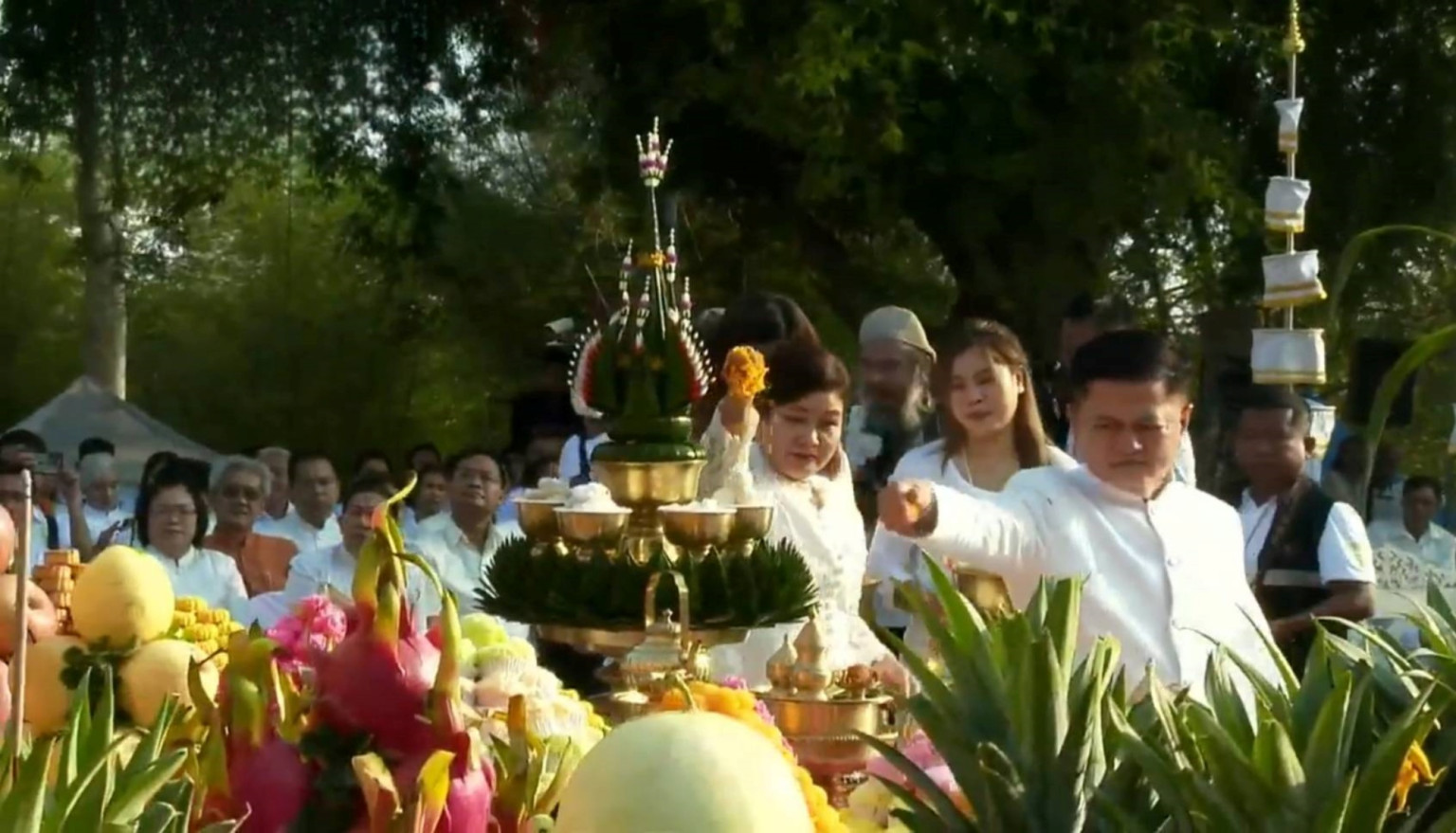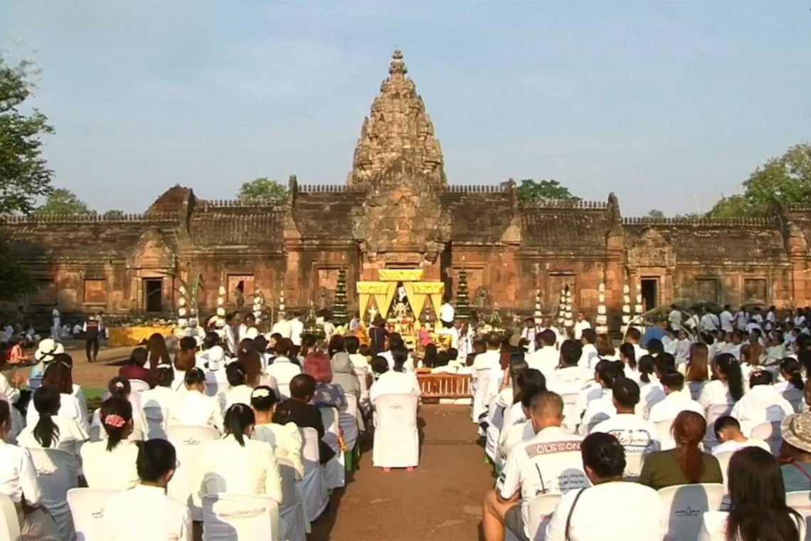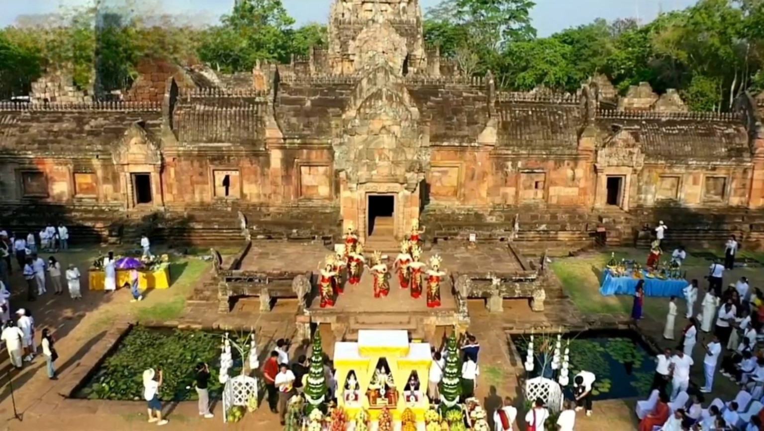 วันที่ 5 เม.ย. 67 เวลา 07.00 น.ผู้สื่อข่าวรายงาน ว่า ที่บริเวณด้านหน้าปราสาทหินพนมรุ้ง ต.ตาเป๊ก อ.เฉลิมพระเกียรติ จ.บุรีรัมย์ นายนฤชา โฆษาศิวิไลซ์ ผู้ว่าราชการจังหวัดบุรีรัมย์ พร้อม รองผู้ว่าราชการจังหวัดบุรีรัมย์ นายกเหล่ากาชาดจังหวัดบุรีรัมย์ นายอำเภอ นำหัวหน้าส่วนราชการ พนักงานรัฐวิสาหกิจ พ่อค้า ประชาชน และนักท่องเที่ยว จำนวนมาก ร่วมกันประกอบพิธีบวงสรวงสิ่งศักดิ์สิทธิ์ บนยอดเขาพนมรุ้ง เพื่อความเป็นสิริมงคล ในการจัดงานประเพณีขึ้นเขาพนมรุ้ง ประจำปี 2567 ที่ทางจังหวัดบุรีรัมย์ ร่วมกับอำเภอเฉลิมพระเกียรติ การท่องเที่ยวแห่งประเทศไทย(ททท.) และอุทยานประวัติศาสตร์พนมรุ้ง จัดขึ้น ในระหว่างวันที่ 5-7เมษายน 2567 ณ อุทยานประวัติศาสตร์พนมรุ้ง ต.ตาเป๊ก อ.เฉลิมพระเกียรติ จ.บุรีรัมย์