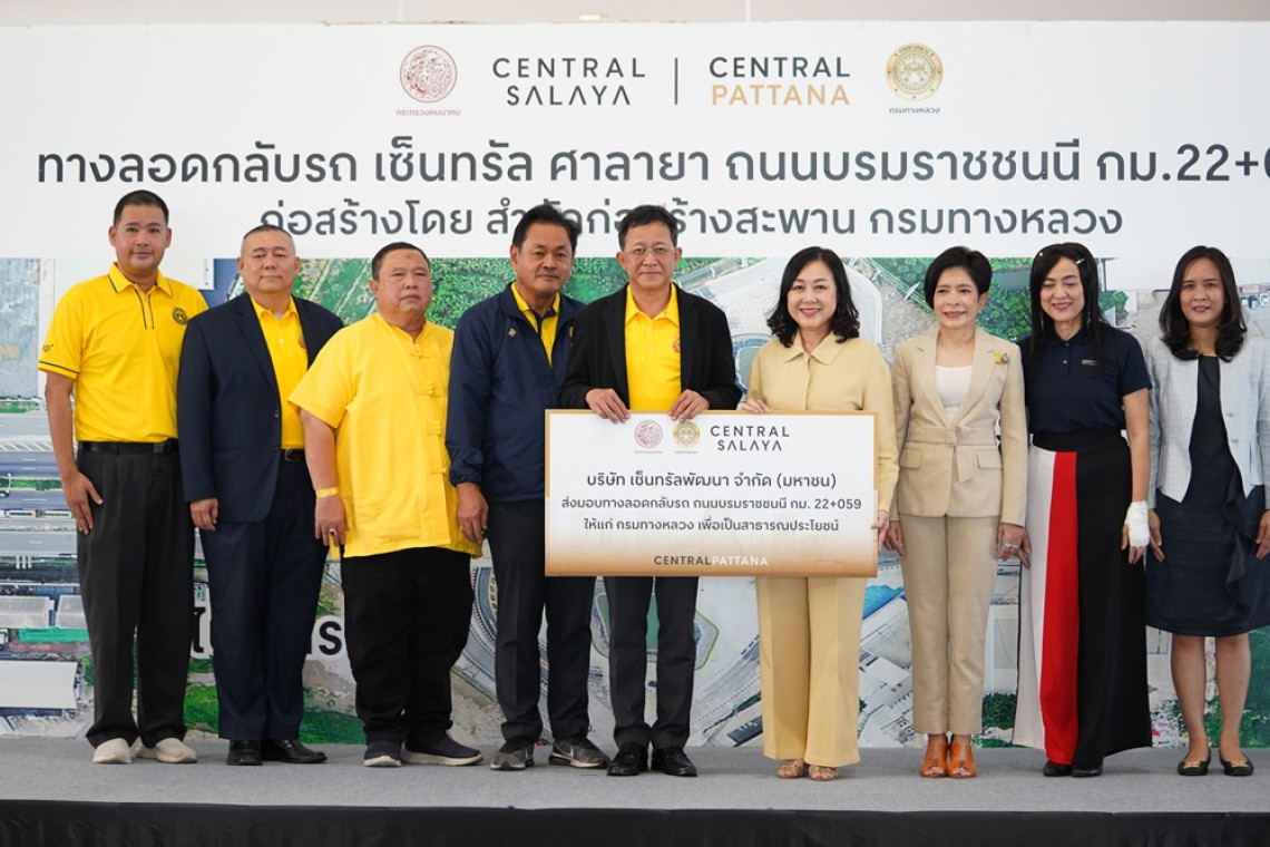 บริษัท เซ็นทรัลพัฒนา จำกัด (มหาชน) มุ่งมั่นยกระดับคุณภาพชีวิตของผู้คนและชุมชน มอบเงินสนับสนุนกว่า 112 ล้านบาท ให้กับกรมทางหลวง กระทรวงคมนาคม เพื่อดำเนินก่อสร้างทางลอดกลับรถบนถนนบรมราชชนนี (ทางหลวงหมายเลข 338) เพื่ออำนวยความสะดวกและความปลอดภัยให้แก่ประชาชน บรรเทาปัญหาการจราจรหนาแน่น และเพิ่มประสิทธิภาพในการรองรับปริมาณจราจรที่เพิ่มขึ้นในอนาคต โดยงานนี้ได้รับเกียรติจาก นายสราวุธ ทรงศิวิไล อธิบดีกรมทางหลวง นายศุภโชค มีอำพล ผู้อำนวยการสำนักงานทางหลวงที่ 13 กรุงเทพ ร่วมด้วยคณะผู้บริหารเซ็นทรัลพัฒนา นำโดย นางสาววัลยา จิราธิวัฒน์ กรรมการผู้จัดการใหญ่และประธานเจ้าหน้าที่บริหาร
