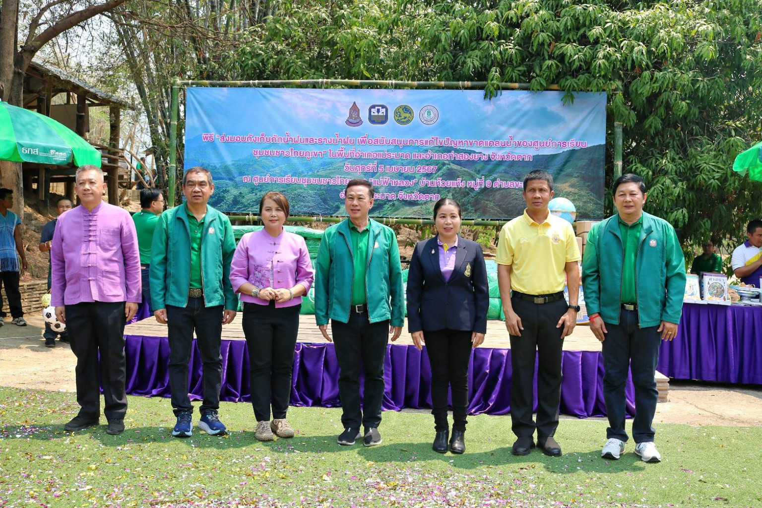เป็นประธานรับมอบถังเก็บกักน้ำฝนและรางน้ำฝน พร้อมทั้งอุปกรณ์ที่จำเป็น จากนายณรงค์ ขันติวิริยะกุล รองผู้จัดการธนาคารเพื่อการเกษตรและสหกรณ์การเกษตร (ธ.ก.ส.) และ นางสุพร ตรีนรินทร์ เลขาธิการ กปร. ร่วมเป็นประธานมอบถังเก็บกักน้ำฝน ให้แก่ ศูนย์การเรียนชุมชนชาวไทยภูเขา “แม่ฟ้าหลวง” (ศศช.) อำเภอแม่ระมาด จำนวน 4 แห่ง ได้แก่ ศศช.บ้านห้วยแห้ง ศศช. บ้านห้วยวัว ศศช.บ้านห้วยหมาบ้า ศศช.บ้านห้วยอีก้าง และอำเภอท่าสองยาง จำนวน 3 แห่ง ได้แก่ ศศช.บ้านแม่หิดคี ศศช.บ้านดูบลอคี ศศช.บ้านโป๊ะพอคี รวมทั้งสิ้น 7 แห่ง โดยมี นายบุญช่วย หอมยามเย็น รองผู้ว่าราชการจังหวัดตาก พร้อมด้วยผู้บริหารหน่วยงาน สถานศึกษา ข้าราชการครู นักเรียน เกษตรกร และผู้เกี่ยวข้องเข้าร่วมงานในครั้งนี้