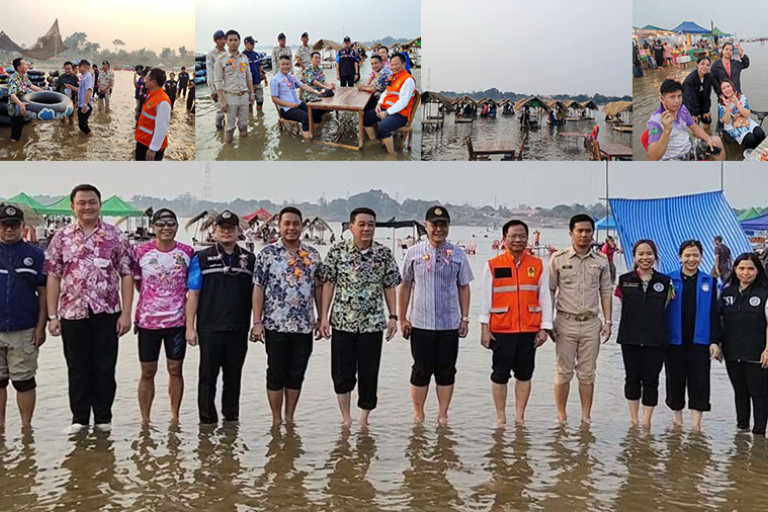เมื่อเวลา 16.30 น. วันที่ 5 เม.ย.ที่บริเวณหาดสุขสำราญบึงกาฬ-ปากซัน นายนคร ศิริปริญญานันท์ รองผู้ว่าราชการจังหวัดบึงกาฬ รับมอบหมายจากนายจุมพฏ วรรณฉัตรสิริ ผู้ว่าราชการฯ พร้อมด้วย นายสมหวัง อารีย์เอื้อ หัวหน้าสำนักงานจังหวัดบึงกาฬ นายอิทธิรัฐ สินารักษ์ ท่องเที่ยวและกีฬาจังหวัดบึงกาฬ นายอภิชัย จำปานิล ป้องกันและบรรเทาสาธารณภัยจังหวัดบึงกาฬ และหัวหน้าส่วนราชการ ได้ออกตรวจดูแลความเรียบร้อย ในการให้บริการของพ่อค้าแม่ขายที่ลงไปตั้งร้านอาหาร ขายเครื่องดื่ม บริการโต๊ะเต้นท์นั่ง ตลอดทั้งการให้เช่าห่วงยางลอยน้ำ ที่ประชาชนพาบุตรหลานมาเที่ยวเล่นน้ำที่หาดสุขสำราญบึงกาฬ-ปากซัน
