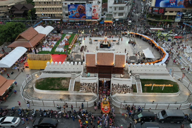 เมื่อวันที่ 9 เมษายน นายไชยนันท์ แสงทอง วัฒนธรรมจังหวัดนครราชสีมา เปิดเผยในฐานะเลขานุการการจัดมหาสงกรานต์โคราช อัญเชิญ “พระคันธารราษฎร์ลอดประตูชุมพล” ว่า กิจกรรมช่วงเย็นของวันที่ 12 เม.ย ทุกภาคส่วนจัดริ้วขบวนแห่อัญเชิญพระคันธารราฐจากวัดพระนารายณ์มหาราชวรวิหาร (วัดกลางนคร) มาประดิษฐานชั่วคราว ที่ลานอนุสาวรีย์ท้าวสุรนารี (ย่าโม) เพื่อจัดพิธีสมโภชและให้นักท่องเที่ยวร่วมสืบสานประเพณีและกราบสักการะ สรงน้ำขอพร เขียนคำอธิษฐานบนผ้าทองผ้าเงิน เสริมสิริมงคลแก่ตนเองและครอบครัว ช่วงกลางคืน พระอาจารย์มหาต่อ ธรรมรังสี ผู้ช่วยเจ้าอาวาสวัดพระนารายณ์ เกจิอาจารย์ชื่อดังประกอบพิธีสวดมนต์เนื่องในวันสงกรานต์ วันขึ้นปีใหม่ไทย ช่วงเย็นวันที่ 13 เม.ย แห่อัญเชิญพระคันธารราฐลอดซุ้มประตูชุมพลพร้อมผ้าทอง ผ้าเงินความยาว 556 เมตร เท่ากับอายุของเมืองโคราช ให้นักท่องเที่ยวจับชายผ้าร่กลับวิหารหลวงวัดพระนารายณ์มหาราช วรวิหาร