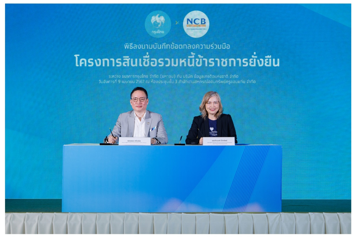 ธนาคารกรุงไทย สนับสนุนนโยบายรัฐบาล เร่งช่วยเหลือข้าราชการกลุ่มเปราะบางแก้ไขปัญหาหนี้ผ่านแคมเปญ “สินเชื่อรวมหนี้ข้าราชการยั่งยืน” อัตราดอกเบี้ยพิเศษคงที่ตลอดอายุสัญญา สามารถขยายเวลาชำระหนี้สูงสุดถึงอายุ 80 ปีตามความจำเป็น ให้มีเงินพอใช้ดำรงชีพ ไม่พึ่งหนี้นอกระบบ พร้อมลงนาม MOU กับ “สหกรณ์ออมทรัพย์ครูขอนแก่น” และ “เครดิตบูโร” นำร่องช่วยเหลือข้าราชการครู เพื่อลดภาระการเงิน ปิดจบหนี้เรื้อรังได้เร็วขึ้น พร้อมเสริมแกร่งความรู้ทางการเงิน ขับเคลื่อนสหกรณ์ต้นแบบแก้หนี้ยั่งยืน พร้อมต่อยอดขยายความร่วมมือกับกรมบัญชีกลาง และหน่วยงานราชการต้นสังกัดที่เกี่ยวข้องต่อไป
