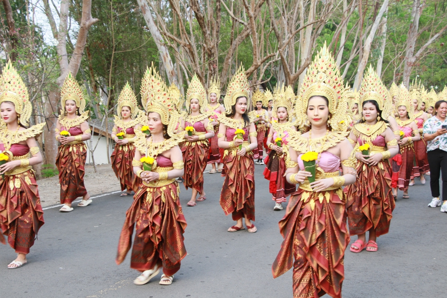 โดยจังหวัดสุรินทร์ ร่วมกับองค์การบริหารส่วนจังหวัดสุรินทร์ ได้จัดริ้วขบวนแห่เพื่อขึ้นไปกราบไหว้พระองค์ใหญ่บนยอดเขาพนมสวาย พระพุทธสุรินทรมงคล โดยจัดตกแต่งนางงาม ที่แต่งกายด้วยชุดสีทองเหลือง เป็น นางอัปสรา 88 นาง เดินขึ้นไปตามทางลาดชันของพนมสวาย ระยะทางกว่า 1,200 เมตร