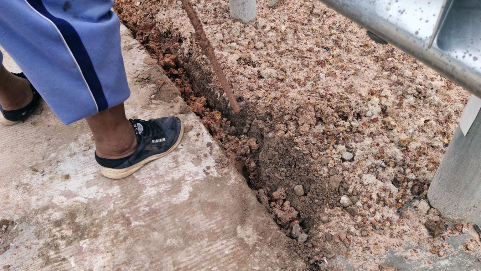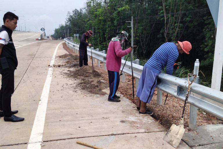 ถนนตัดใหม่ระยะทาง 12 กิโลเมตร แยกออกจากถนน 222 ก่อสร้างเพื่อไปยังสะพานไทย- ลาวแห่งที่ 5 เพิ่งสร้างเสร็จยังไม่ได้เปิดใช้เป็นทางการ เจอฝนห่าแรก ชาวบ้านผ่านไปพบถนนคอนกรีตก่อนถึงคอสะพานทรุดตัวเป็นโพรงลึกกว่า 1 เมตร ยาวกว่า 10 เมตร บริษัทรับเหมาส่งคนงานซ่อมใช้ชะแลงทิ่มตำหินภูเขาอุดโพรงใต้คอนกรีต ชาวเห็นเกรงจะทรุดตัวหนักร้องให้บริษัททำดีกว่านี้หน่อย เกรงคนใช้ถนนไม่ปลอดภัย
