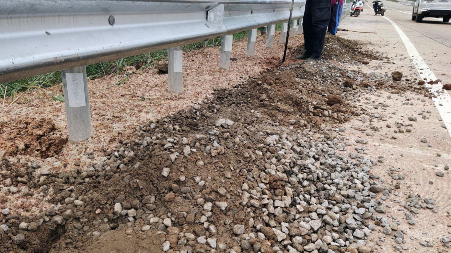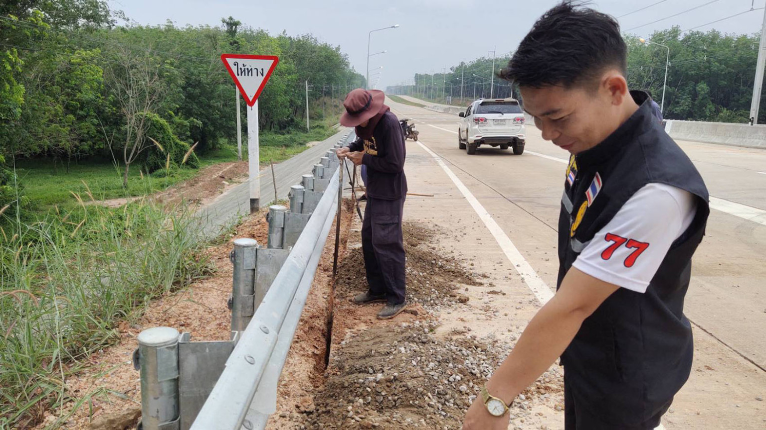 ด้านนายสมยศ ไกยวรรณ ผู้ใหญ่บ้านหมู่ 8 บ้านห้วยดอกไม้ กล่าวเพิ่มเติมว่า หลังจากได้รับแจ้งทางโทรศัพท์จากลูกบ้าน จึงได้รุดมาตรวจสอบดูเบื้องต้น ก็พบถนนคอนกรีตเสริมเหล็ก 4 ช่องจราจรฝั่งRT บริเวณข้ามแยกบ้านห้วยดอกไม้ หมู่ที่ 8 ต.วิศิษฐ์ พบว่าพื้นผิวถนนที่ทรุดพังคนงานของบริษัทกำลังนำดินลูกรังเทลงไปอุดส่วนถนนที่ทรุดพังและเป็นโพรง โดยใช้อุปกรณ์พื้นๆ เช่น เหล็กชะแลงทิ่มตำหินภูเขาลงไปอุดให้แน่น ก็เกิดความหวั่นเกรงจะไม่แน่นดีพอเหมือนเครื่องจักรกลหนัก เช่น รถสามล้อบดอัด จึงกลัวว่าจะเกิดอันตรายได้ในภายภาคหน้า ตนในฐานะผู้นำชุมชนและผู้ปกครองท้องที่ในเขตหมู่บ้านนี้ และเป็นผู้ที่จะใช้ถนนเส้นนี้ในอนาคต ถ้าเกิดฝนตกต่อเนื่องสภาพดินขอบคอนกรีตจะเหลือหรือครับ จุดที่ถนนพังก็อยู่ใกล้กับคอสะพานถนนก็สูงด้วย เมื่อคืนเกิดฝนตกหนักทำให้ดินทรุดลง นี่แค่ฝนห่าแรกเท่านั้น ถนนมีรอยแตกร้าวด้วย ซึ่งถนนเส้นนี้ยังไม่ได้เปิดใช้งานเป็นทางการ จึงขอให้บริษัทผู้รับเหมาตรวจสอบและเพิ่มความแข็งแรงของถนนเพื่อความปลอดภัยของผู้ใช้ถนนในอนาคตต่อไปด้วย