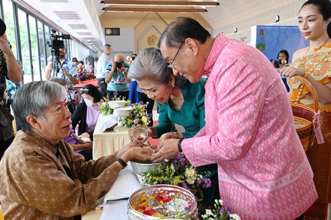10 เม.ย. 67 กรมส่งเสริมวัฒนธรรม(สวธ.) จัดงานรดน้ำขอพรศิลปินแห่งชาติ เนื่องในเทศกาลสงกรานต์ ประจำปี 2567 โดยมีนายเสริมศักดิ์ พงษ์พาณิช รมว.วัฒนธรรม เป็นประธานงาน พร้อมด้วยผู้บริหารกระทรวงวัฒนธรรม ทายาทศิลปินแห่งชาติ เข้าร่วมแสดงมุทิตาจิต ณ อาคารเอนกประสงค์ ศูนย์วัฒนธรรมแห่งประเทศไทย โดยบรรยากาศเต็มไปด้วยรอยยิ้ม ความอบอุ่น แสดงออกถึงความรัก ความผูกพัน ความกตัญญูกตเวทิตาต่อผู้ใหญ่ และบุคคลที่เคารพรัก