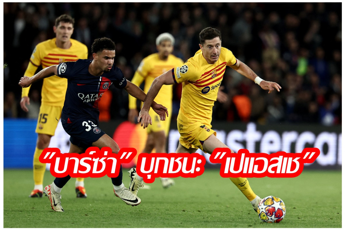 ศึกฟุตบอลยูฟ่า แชมเปี้ยนส์ลีก รอบ 8 ทีม นัดแรกคืนวันพุธที่ 10 เม.ย.67 "เปแอสเช" จ่าฝูงลีกเอิง เปิดสนามปาร์ก เดส์ แพร็งส์ รับ "บาร์เซโลน่า" ยักษ์ใหญ่จากลาลีกา นาที 37 จาก ราฟินญ่า ก่อนจบ 45 นาที "บาร์เซโลน่า" นำ "เปแอสเช" 1-0 ครึ่งหลังนาทีที่ 48 เดมเบเล่ ยิงให้ "เปแอชเช" ตีเสมอ 1-1 จากนั้นนาที 50 วิตินญ่า ยิงให้ "เปแอชเช" พลิกนำ 2-1 นาที 62 "บาร์เซโลน่า" ตามตีเสมอ 2-2 จาก ราฟินญ่า แต่แล้วนาทีที่ 77 อันเดรส คริสเตียนเซ่น ยิงให้ "บาร์เซโลน่า" แซง 3-2 จบเกม "บาร์เซโลน่า" บุกชนะ "เปแอสเช" 3-2 โดยนัดที่ 2 จะกลับไปเล่นที่ "บาร์เซโลน่า" สัปดาห์หน้า