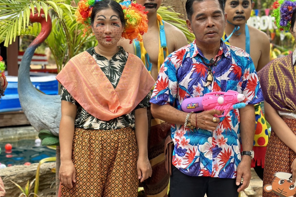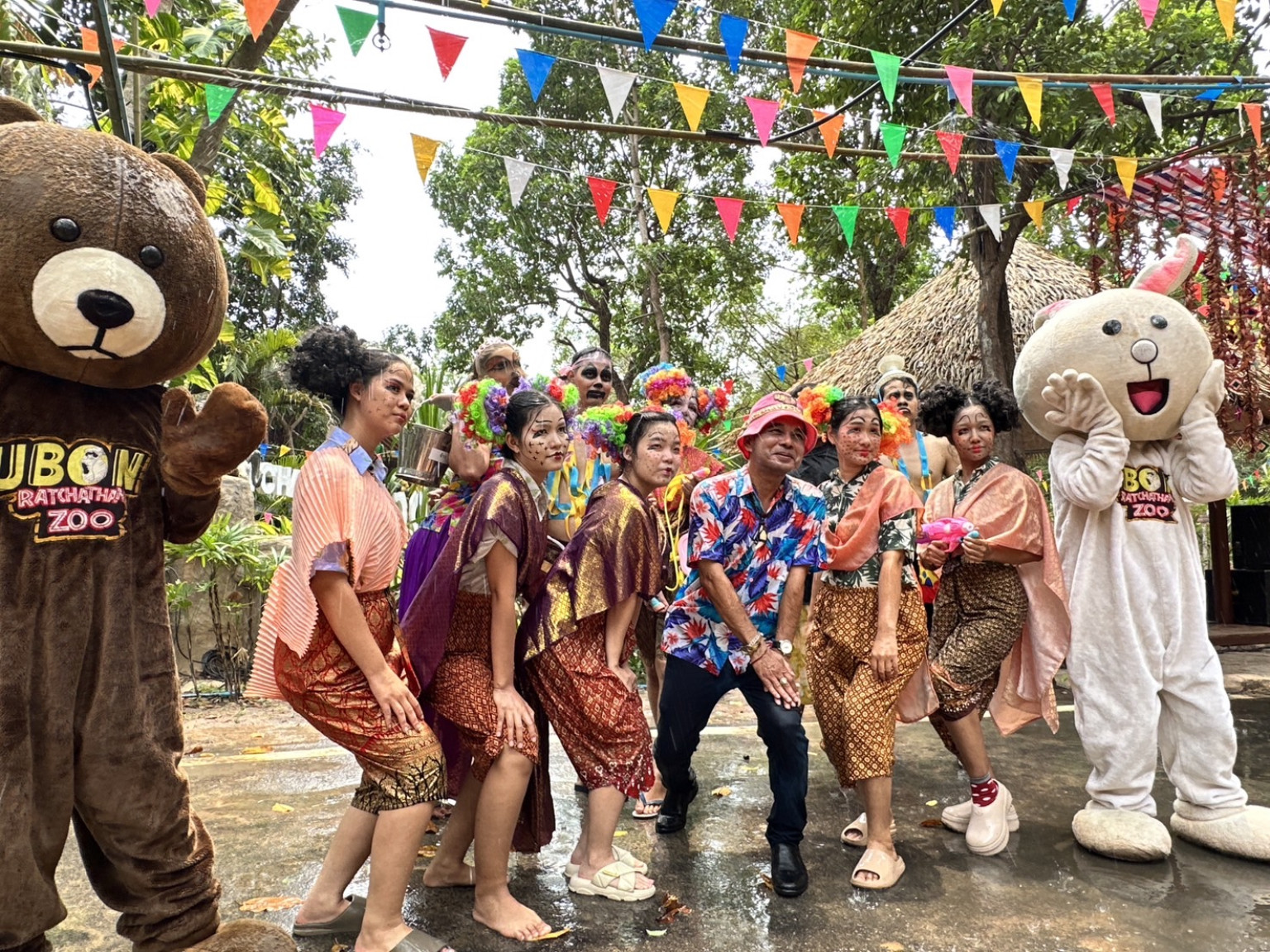 ที่สวนสัตว์อุบลราชธานี นายทนบ ศิริปิยนาค รักษาการผู้อำนวยการสวนสัตว์อุบลราชธานี นำเจ้าหน้าที่สวนสัตว์อุบลราชธานี แต่งกายมาในตรีมดำดง เสื้อลายดอก และ มาสคอทสัตว์ ต้อนรับนักท่องเที่ยวในช่วงเทศกาลสงกรานต์ ประจำปี 2567 ในชื่องาน สงกรานต์บ้านนา @สวนสัตว์อุบล ระหว่างวันที่ 12 - 16 เม.ย.67