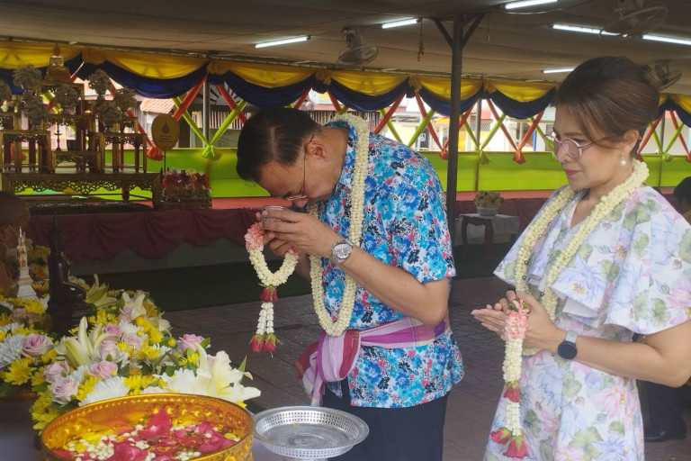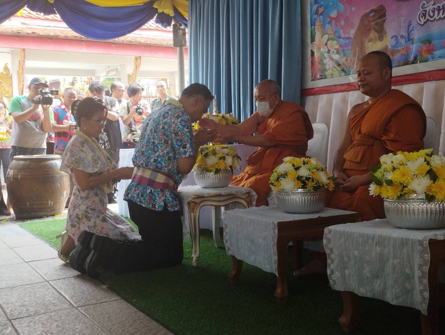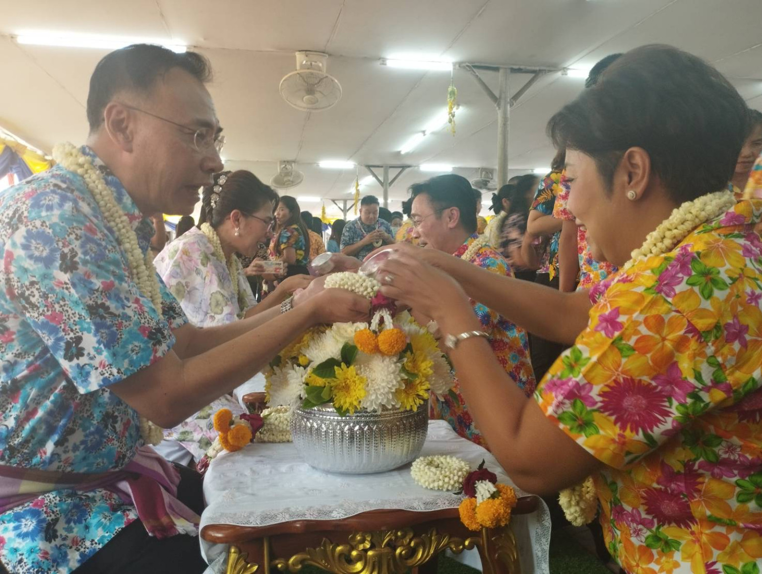 หลังจากนั้นนายชรินทร์ ทองสุข ผู้ว่าราชการจังหวัดยโสธรพร้อมด้วย นางสินีนาฏ ทองสุข นายกเหล่ากาชาดจังหวัดและประธานแม่บ้านมหาดไทยจังหวัดยโสธรได้นั่งเก้าอี้ที่จัดเตรียมไว้ให้หัวหน้าส่วนราชการ ข้าราชการ และประชาชนได้รดน้ำเพื่อขอพรเพื่อเป็นสิริมงคลต่อตนเองและครอบครัวโดยมี นายสุวัฒน์ เข็มเพชร นายชาญชัย ศรศรีวิชัย รองผู้ว่าราชการจังหวัดยโสธร รองนายกเหล่ากาชาดจังหวัด ปลัดจังหวัด ท้องถิ่นจังหวัดและหัวหน้าส่วนราชการ นายอำเภอ 9 อำเภอข้าราชการ ภาคเอกชนตลอดจนประชาชนชาวจังหวัดยโสธรร่วมกิจกรรมในครั้งนี้เป็นจำนวนมาก