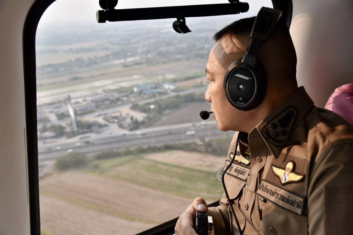 เมื่อช่วงเย็นที่ (11 เม.ย.) พล.ต.อ.กิตติ์รัฐ พันธุ์เพ็ชร์ รองผู้บัญชาการตำรวจแห่งชาติ รักษาราชการแทนผู้บัญชาการตำรวจแห่งชาติ พร้อมด้วย พล.ต.ท.ธัชชัย ปิตะนีละบุตร ผู้ช่วย ผบ.ตร. ขึ้นเฮลิคอปเตอร์บินตรวจสภาพการจราจรรองรับการเดินทางกลับภูมิลำเนา และท่องเที่ยวของพี่น้องประชาชน ในช่วงเทศกาลสงกรานต์ 2567