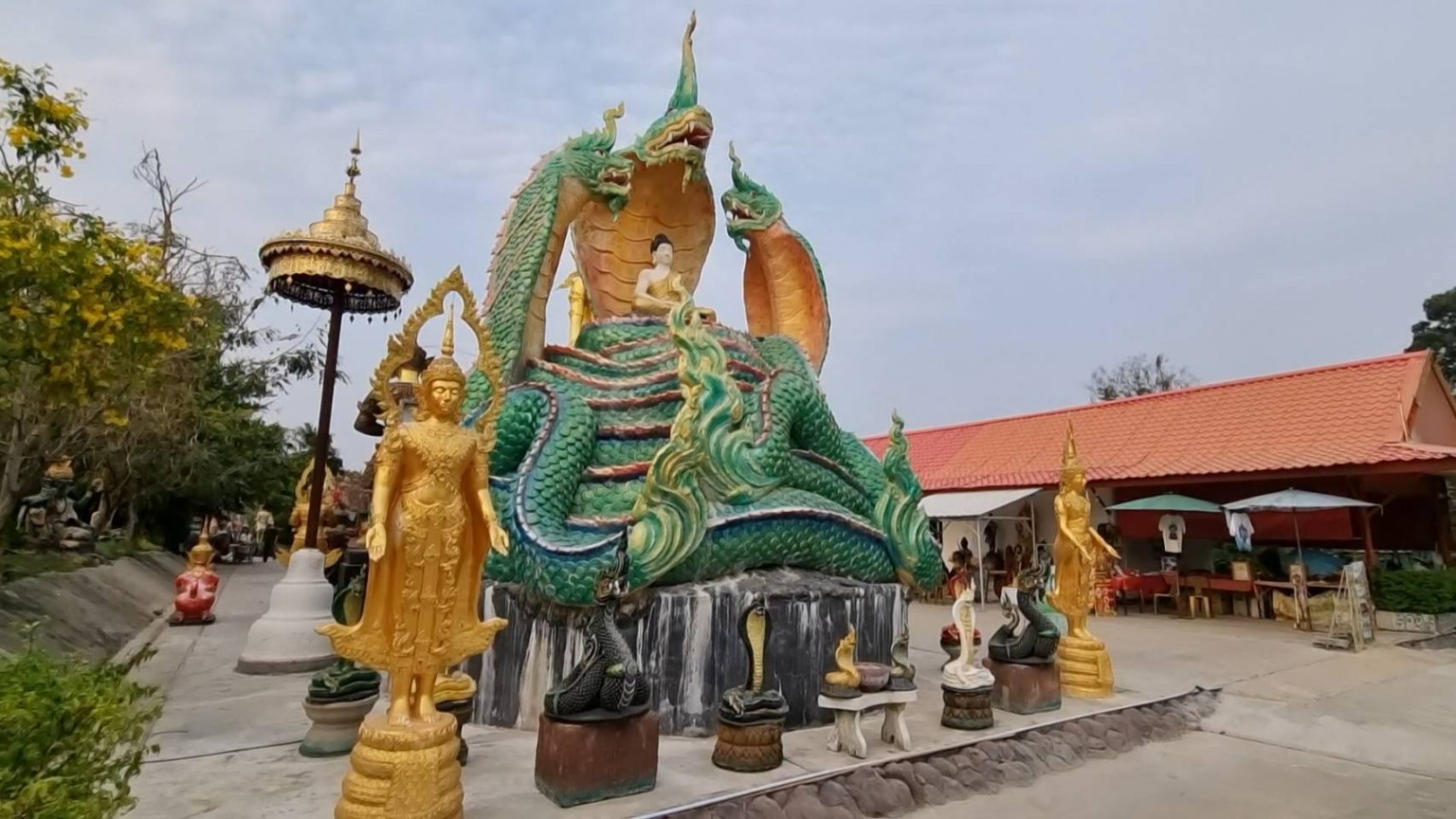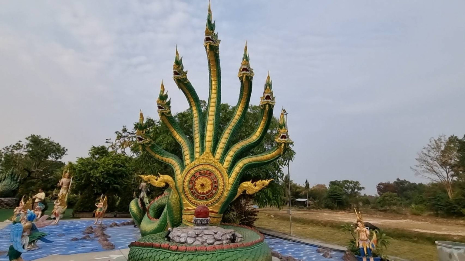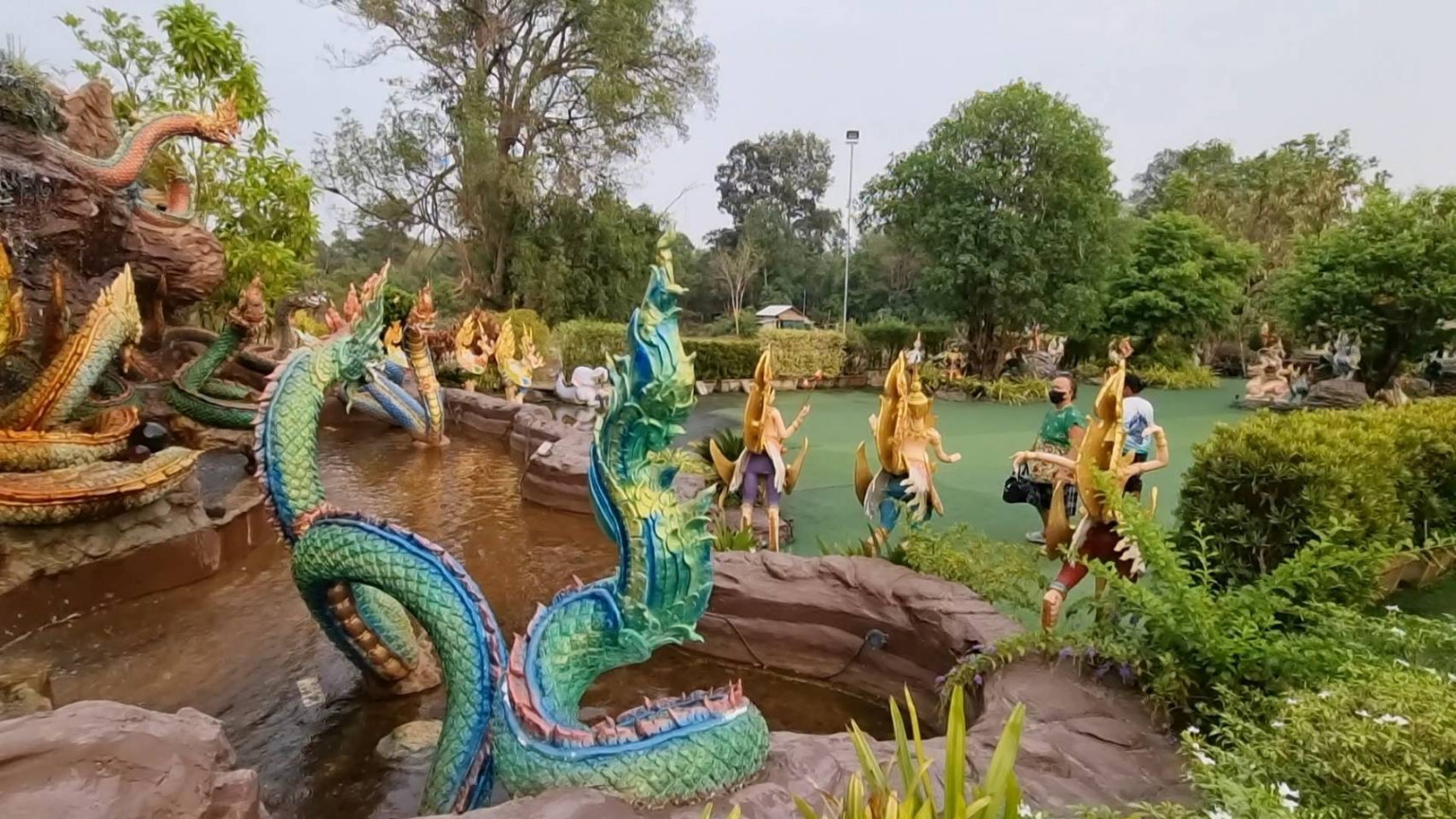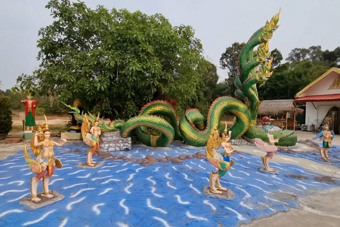 ที่ จ.อุบลราชธานี ผศ.ดร.พนธ์พันธ์ เลิศจันทรางกูร ผู้ก่อตั้งอุทยานนาควัตร คำชะโนด 1 เดียวใน อีสานใต้ โดยสงกรานต์ปีนี้ พาครอบครัวเที่ยวสุขใจ ในวันหยุดยาว ที่อุทยานนาควัตร จ.อุบลราชธานี ร่วมสรงน้ำองค์สมเด็จพระจักรพรรดิปางเปิดโลก สูง 21 เมตร สูงที่สุดในภาคในภาคอิสาน กราบไหว้สักการะ แก้ปีชง พลิกดวงรวย ไหว้เสริมบุญเสริมความรวย ณ ลานท้าวเวสสุวรรณ 5 ปางเศรษฐี