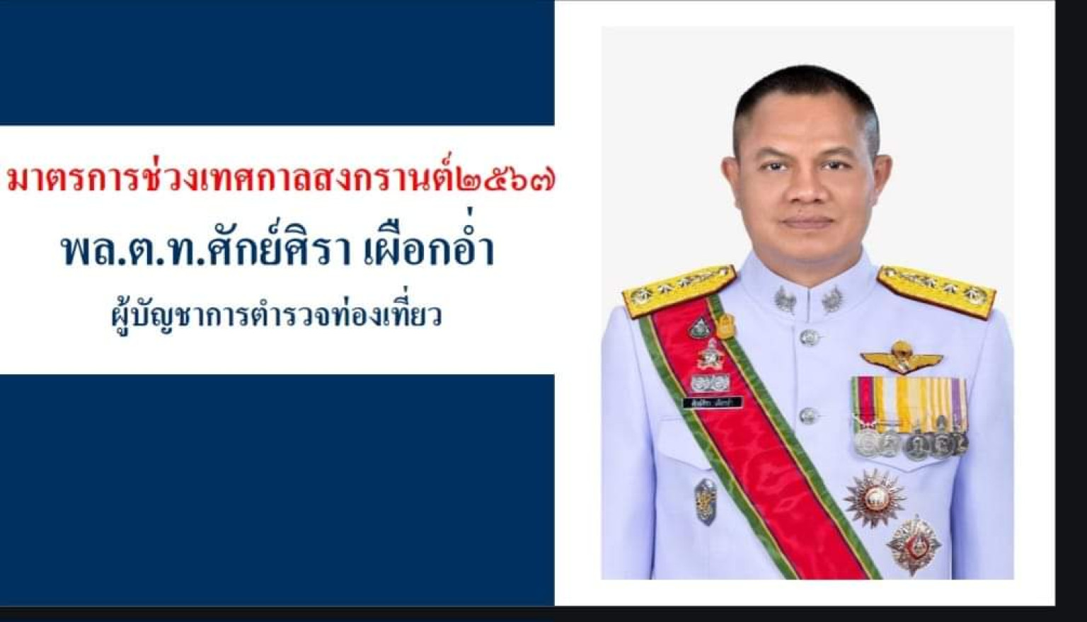 "บิ๊กเผือก"พล.ต.ท.ศักย์ศิรา เผือกอ่ำ ผบช.ทท. เปิดเผยว่าตามที่นายเศรษฐา ทวีสิน นายกรัฐมนตรี มีข้อสั่งการให้ทุกหน่วยงาน เตรียมพร้อมอำนวยความสะดวกและดูแลความปลอดภัยให้กับประชาชนและนักท่องเที่ยวในช่วงเทศกาลสงกรานต์อย่างเต็มที่ โดยในส่วนของการท่องเที่ยว นางสาวสุดาวรรณ หวังศุภกิจโกศล รัฐมนตรีว่าการกระทรวงการท่องเที่ยวและกีฬา มีนโยบายให้ตำรวจท่องเที่ยวเป็นหน่วยปฏิบัติและประสานงาน และให้สายด่วนตำรวจท่องเที่ยว หมายเลข 1155 รวมถึง Application “Tourist Police i lert u” เป็น One-Stop service เชื่อมต่อหน่วยงานที่เกี่ยวข้องให้ความช่วยเหลือนักท่องเที่ยว